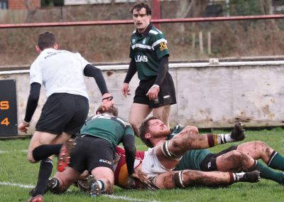 The Greens continued with their doggedness, turned the screw and started to get on top, the Greens win a turnover, a run by Marcus Payne with a play across field and quick hands get the ball into the hands of winger Will Robinson to score a try, this was converted by Will Darke. Fylde 33 Greens 15.