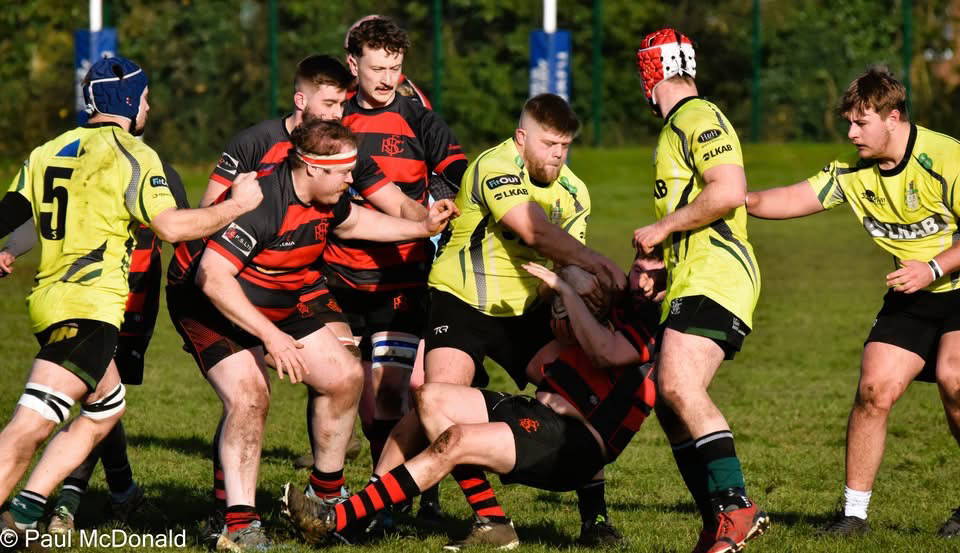 Fylde drove at the scrum, getting a penalty, they clear the ball into the Greens half, Fylde again played away from the line out and eventually held up and the Greens had a scrum, there is then a long break for an injury to a Fylde player, from the restart Fylde play through their forward put the Greens under pressure but resolute defending kept them out, a play just before half time sees Fylde score a try through Adam Lewis, successful conversion and the referee blows for half time.