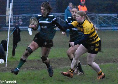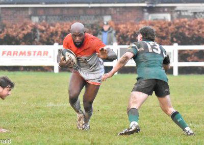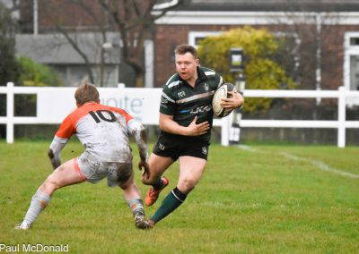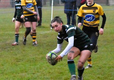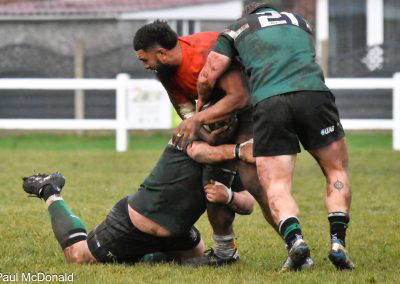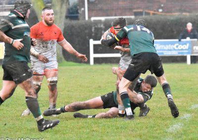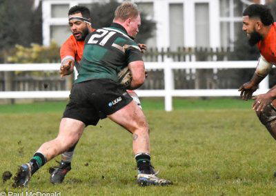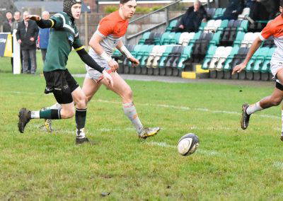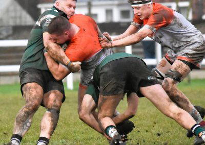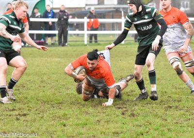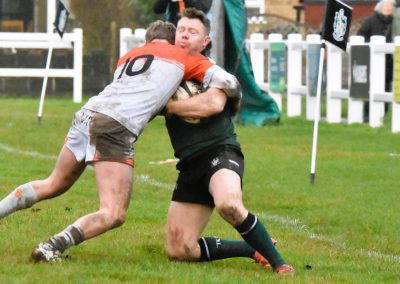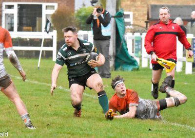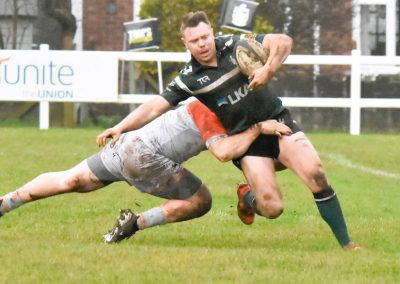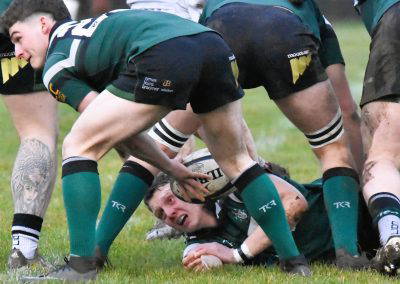 Another Green turned over and again cleared up the field, Rossendale came back to be stopped at the 5 metre line, unfortunately the Greens were penalised for a hand in the ruck and a yellow card for Marcus Payne followed, from the tap penalty, a drive by Rossendale and a pick up at the back of the ruck sees the Rossendale 4 Masi Clarke score under the posts, converted by Kieran Tyrer.