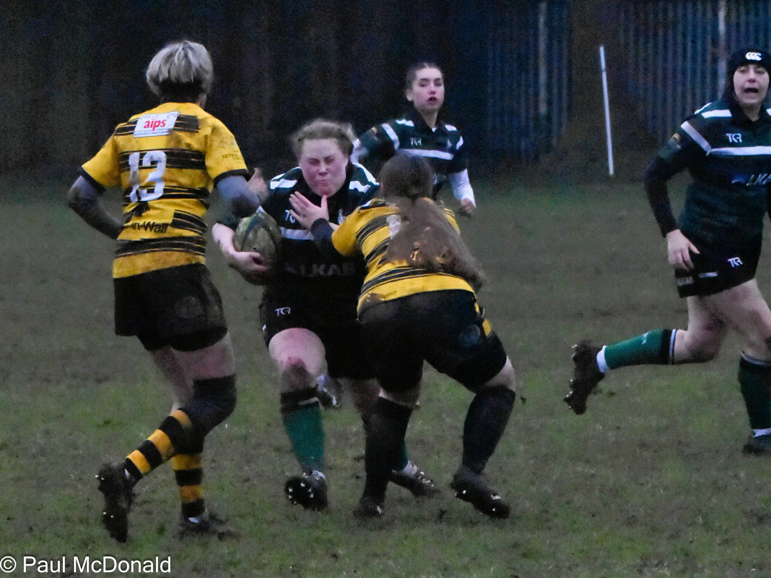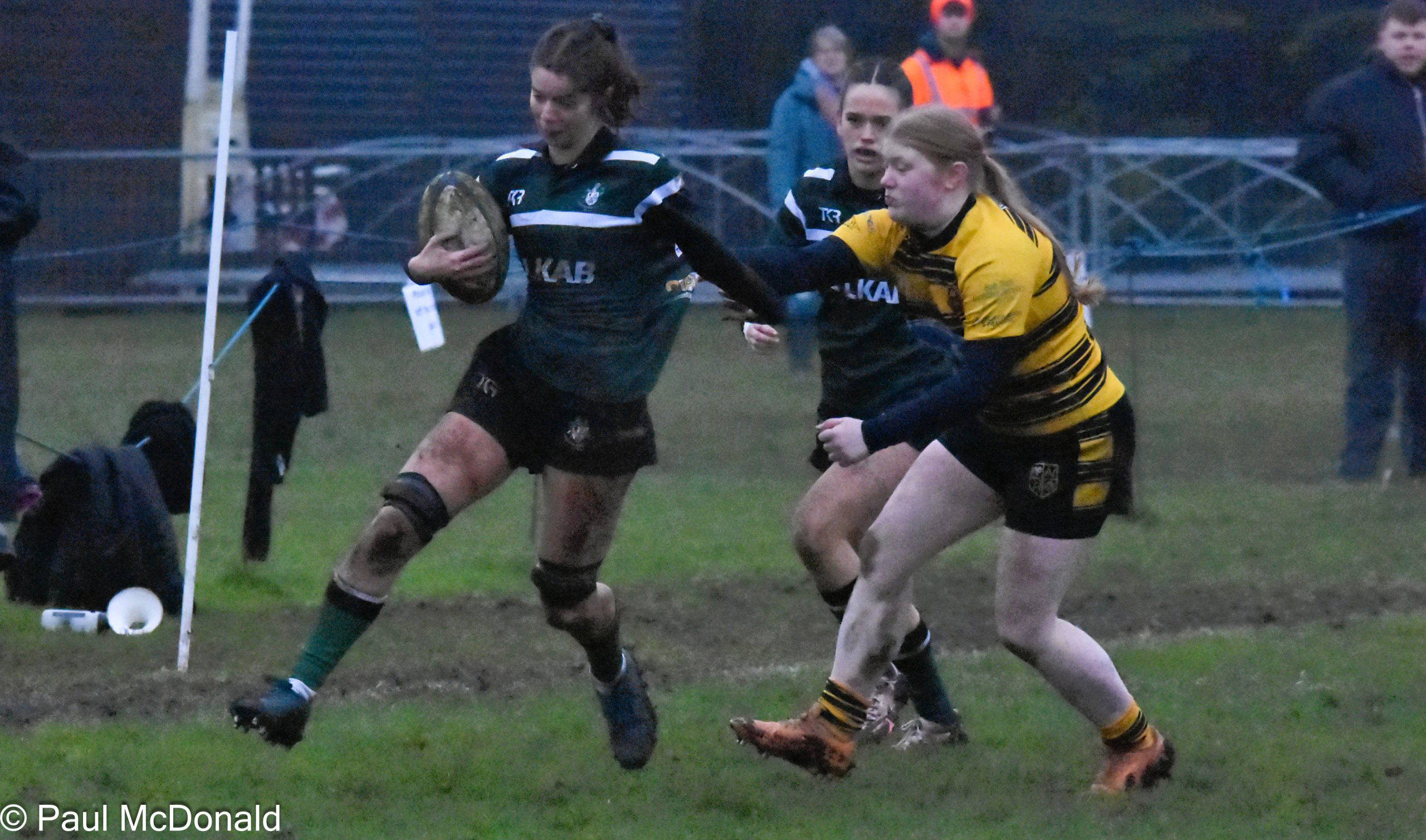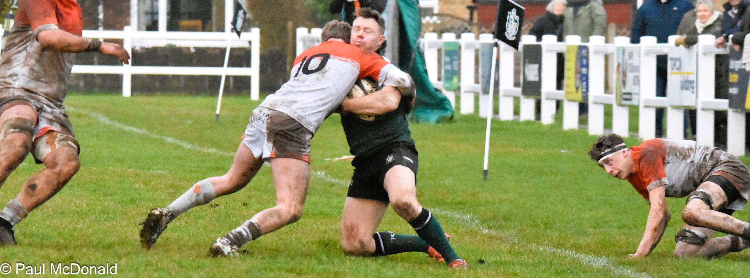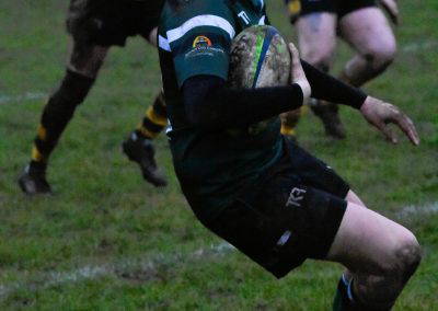 On 39 minutes Jack Murr scored a great individual try initiated by Elliot Saltmarsh, Saltmarsh picked up from the scrum and fed Jack on the halfway line he dodged and weaved in the mud, he was struggling at the end as the sticky conditions began to tell but he kept on going and just scraped over the line. Henry Dawson took the conversion and added the extra two, 7-12, half time.
