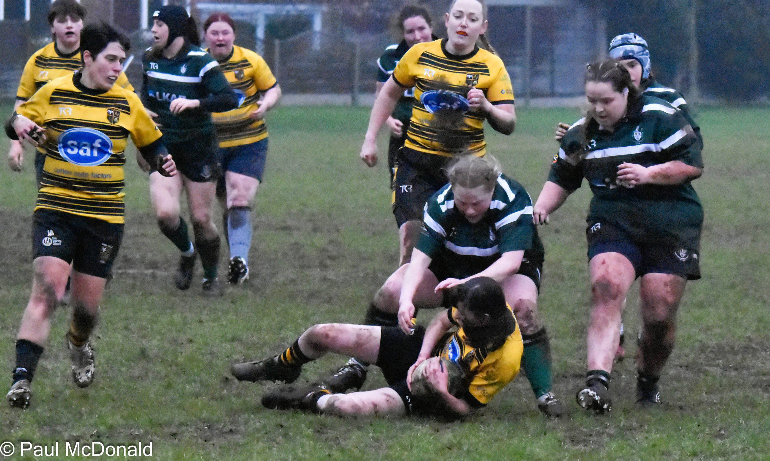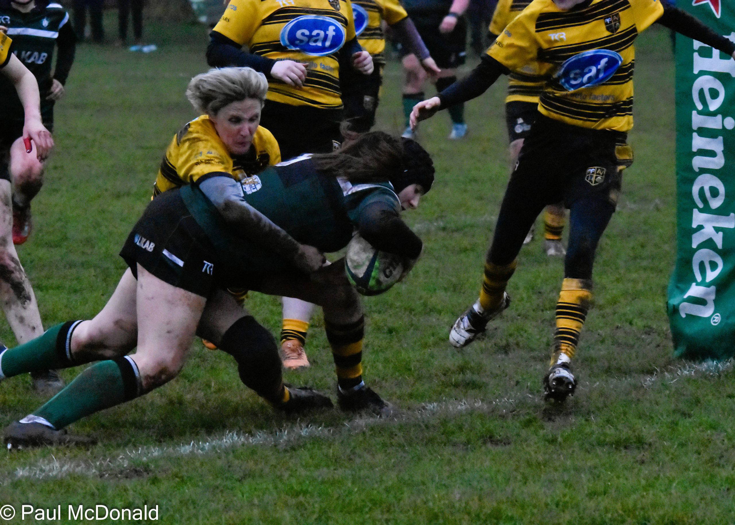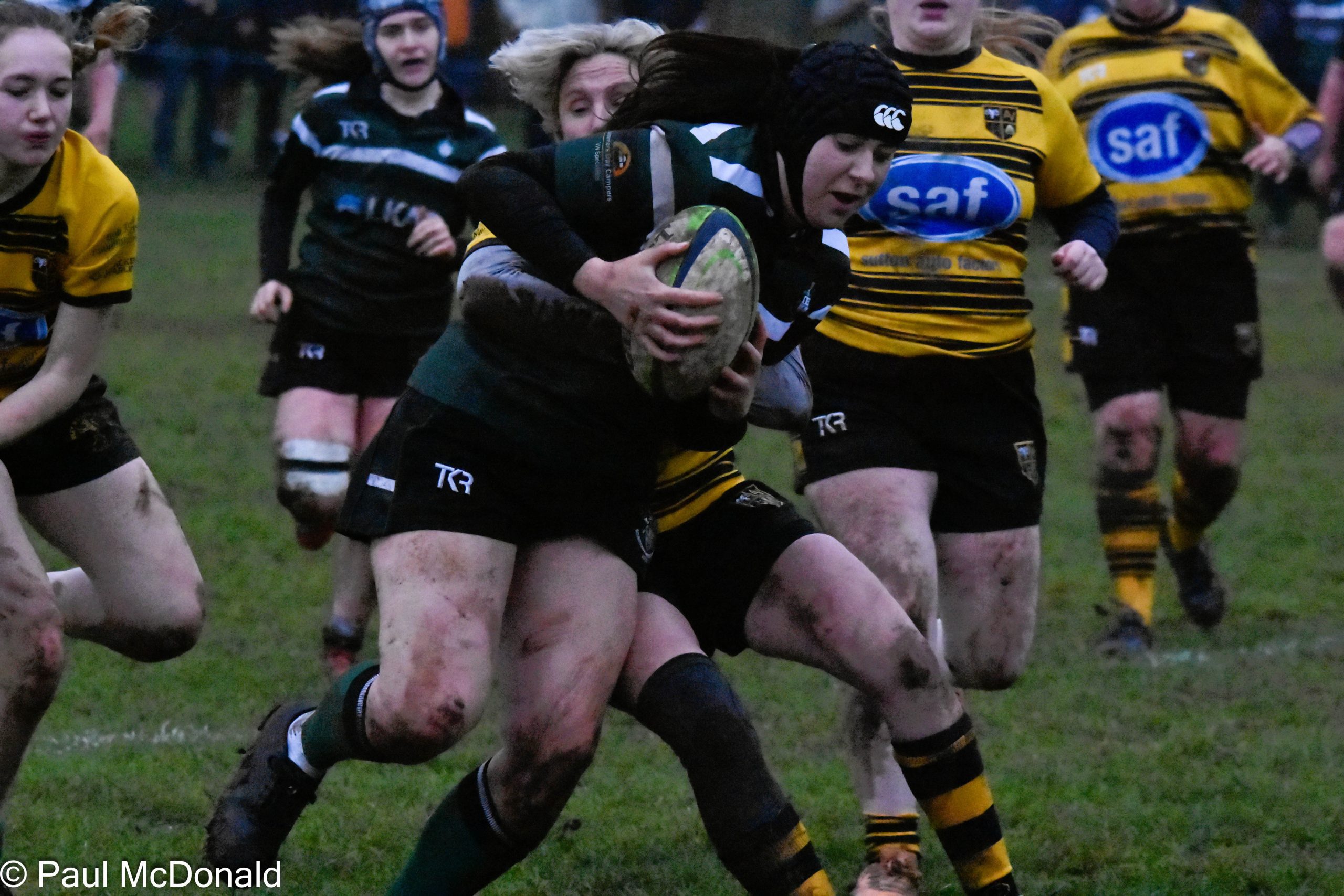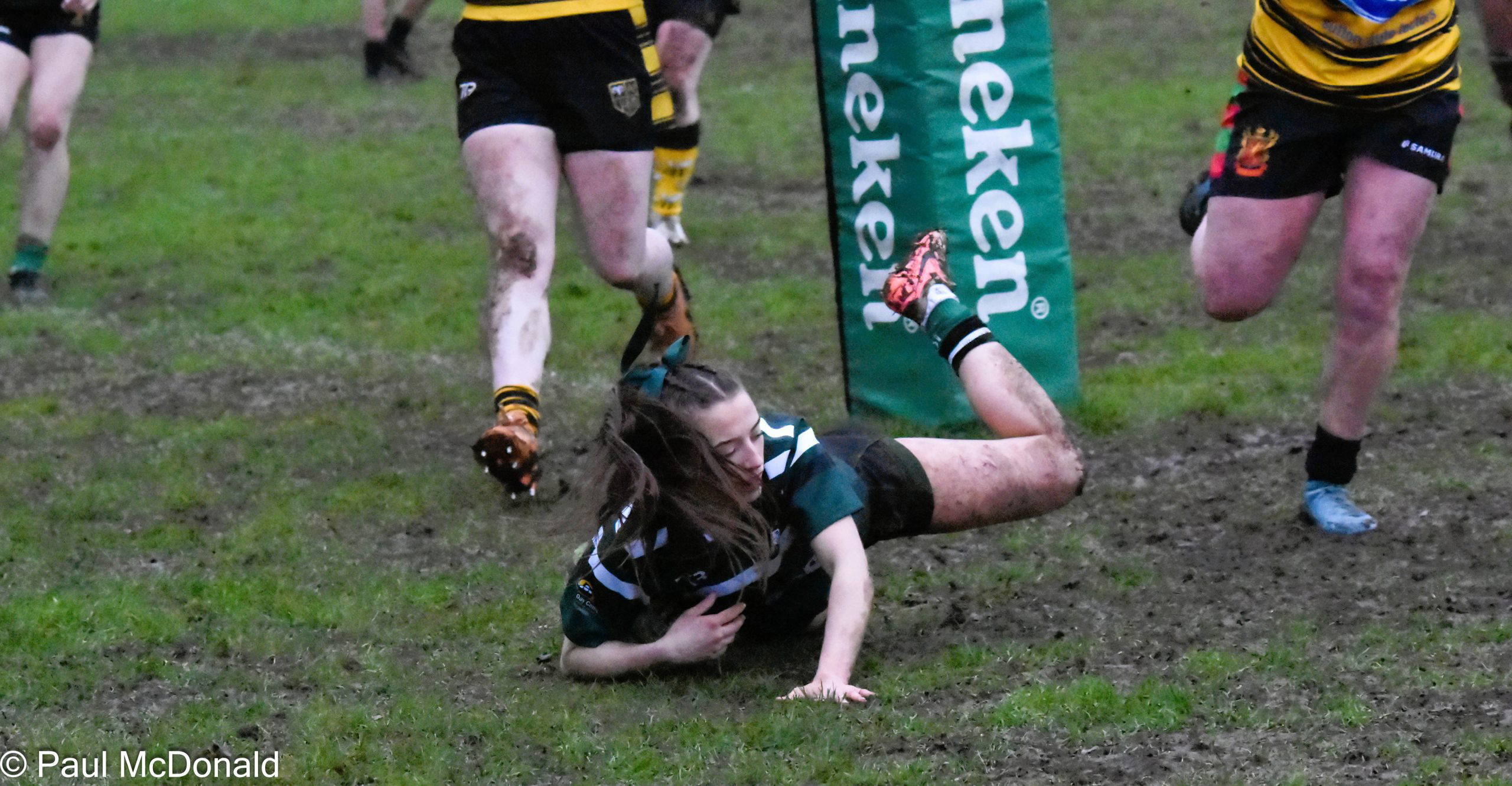 On 39 minutes Jack Murr scored a great individual try initiated by Elliot Saltmarsh, Saltmarsh picked up from the scrum and fed Jack on the halfway line he dodged and weaved in the mud, he was struggling at the end as the sticky conditions began to tell but he kept on going and just scraped over the line. Henry Dawson took the conversion and added the extra two, 7-12, half time.