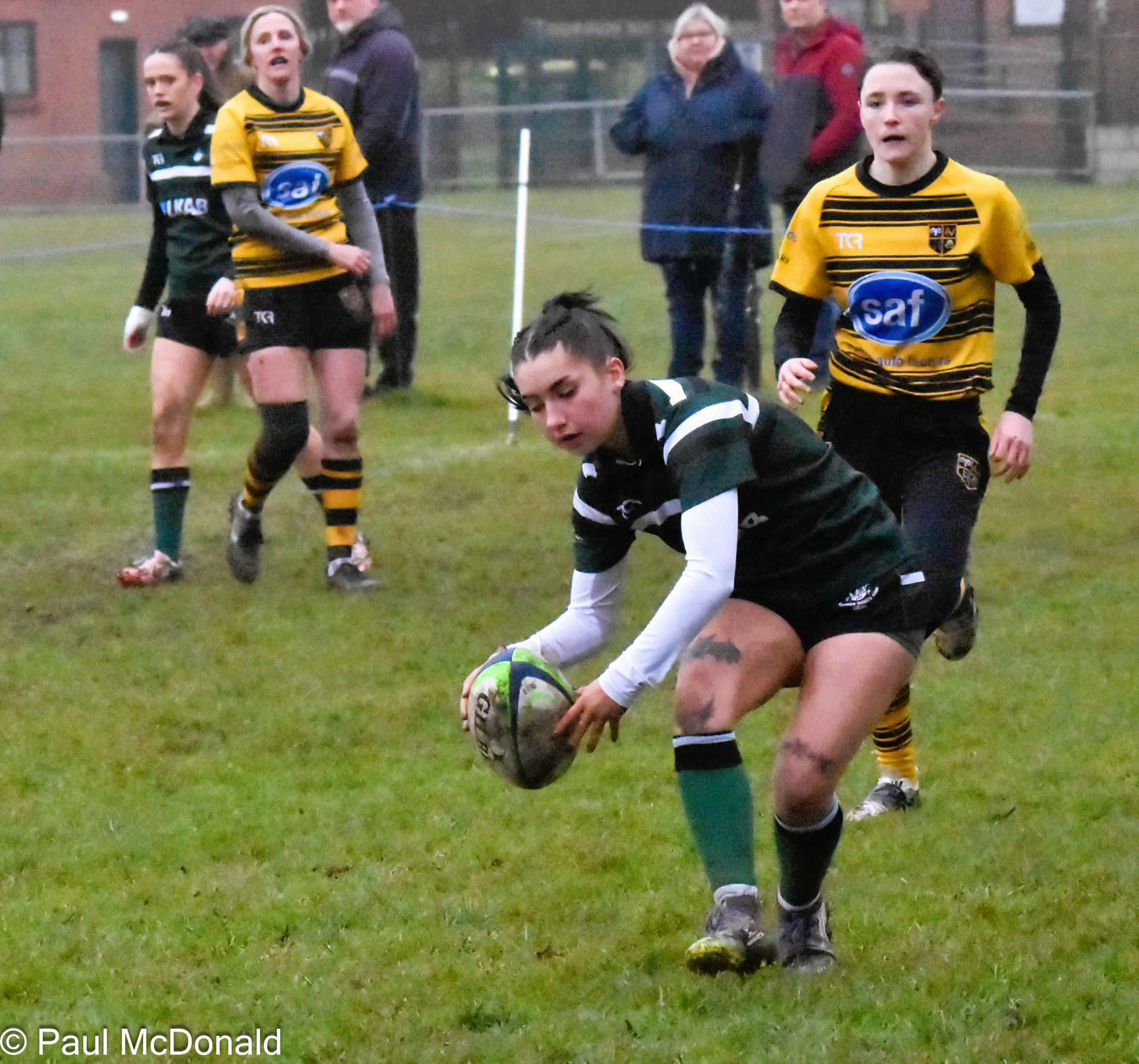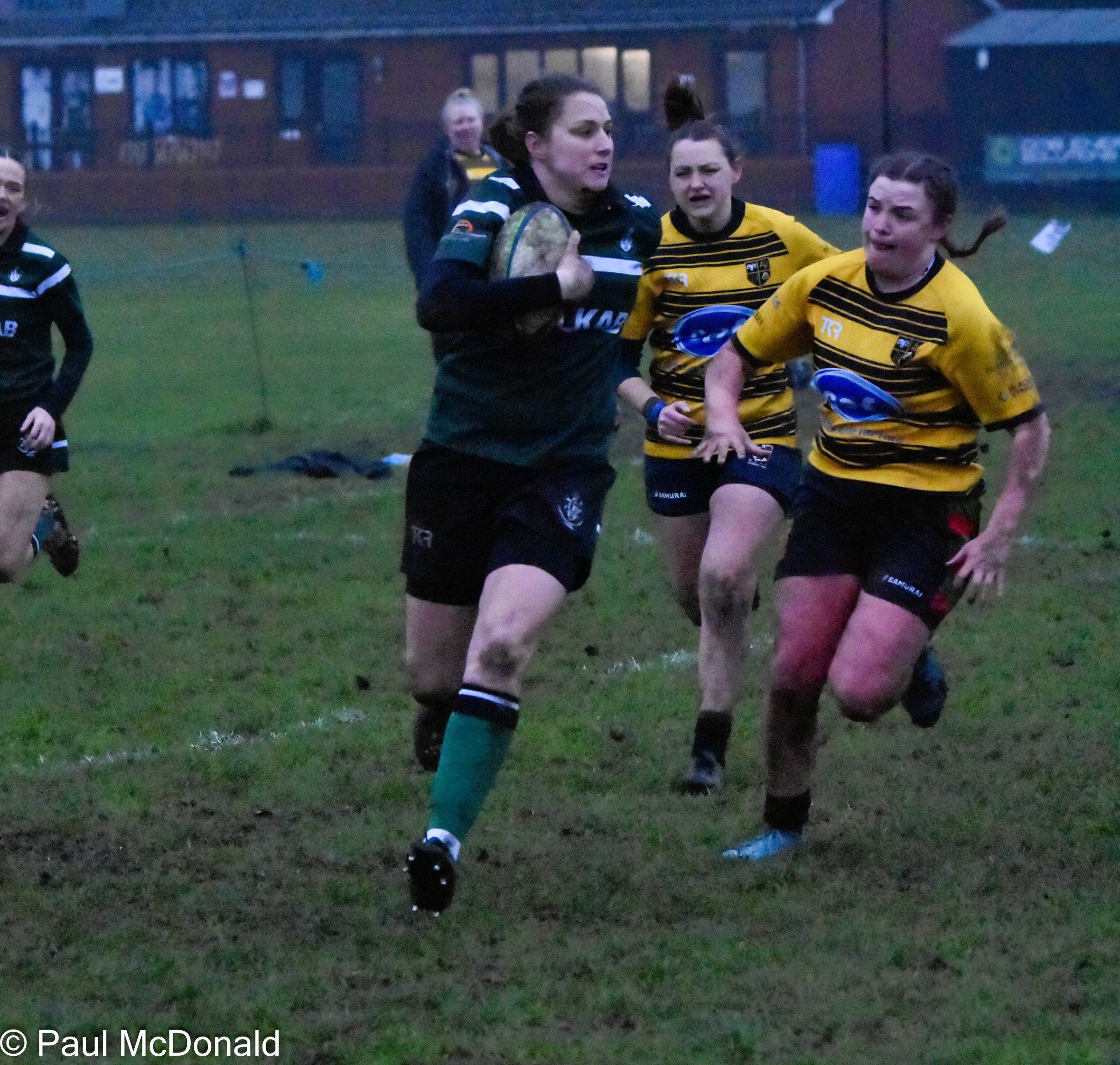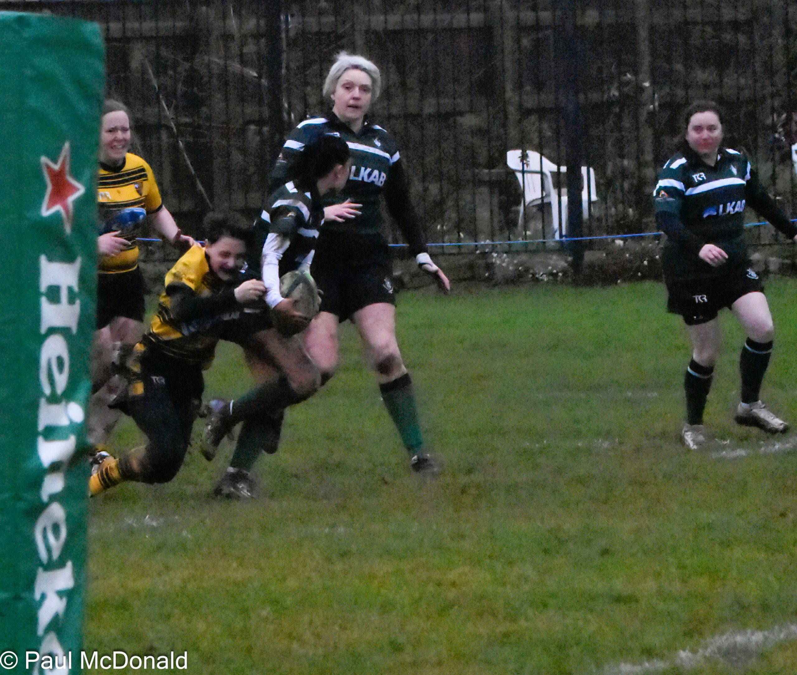 From a great turn over the Greens kick into the Rossendale half where the full back fails to catch the ball and a kick ahead by Lewis Talbot finds the Greens in prime position in the Rossendale 5 metre area, a couple of quick rucks sees the Greens score a try through Will Dale converted by Will Darke.