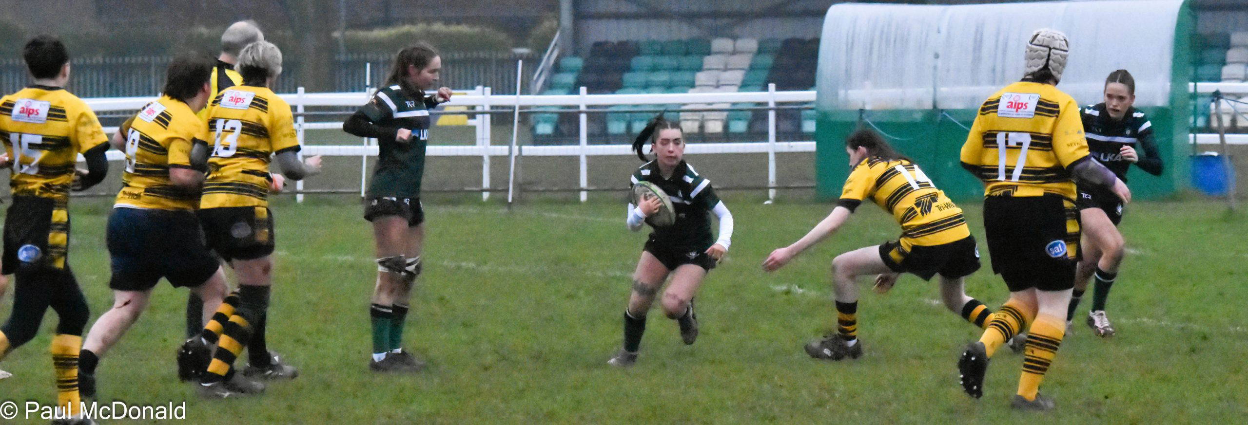 Will Robinson breaks down the left wing on the stand side before being brought down, he sets up the ball and the ball goes across to the other wing, Greens gain another 20m but lose the ball forward, The Greens still worked hard through the forwards but were unable to break the Rossendale resolute defence,