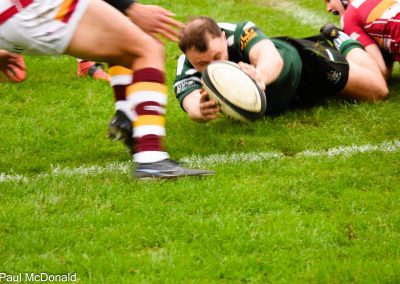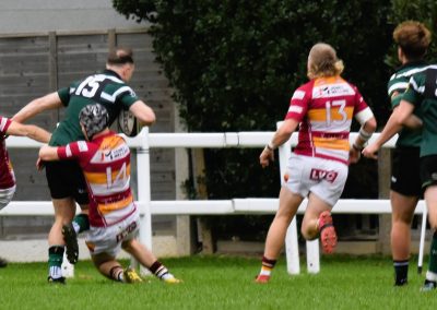 Tim Robinson’s men were not giving in and defending their line superbly. Fylde were held up over the line, so Taylor took a goal line drop out. Unfortunately, if the ball does not find space on the field the Fylde backs will catch and run all day. A lapse in concentration and some poor tackling allowed big strong running centre Sam Stott an easy try, which Cassidy converted, 22-38.