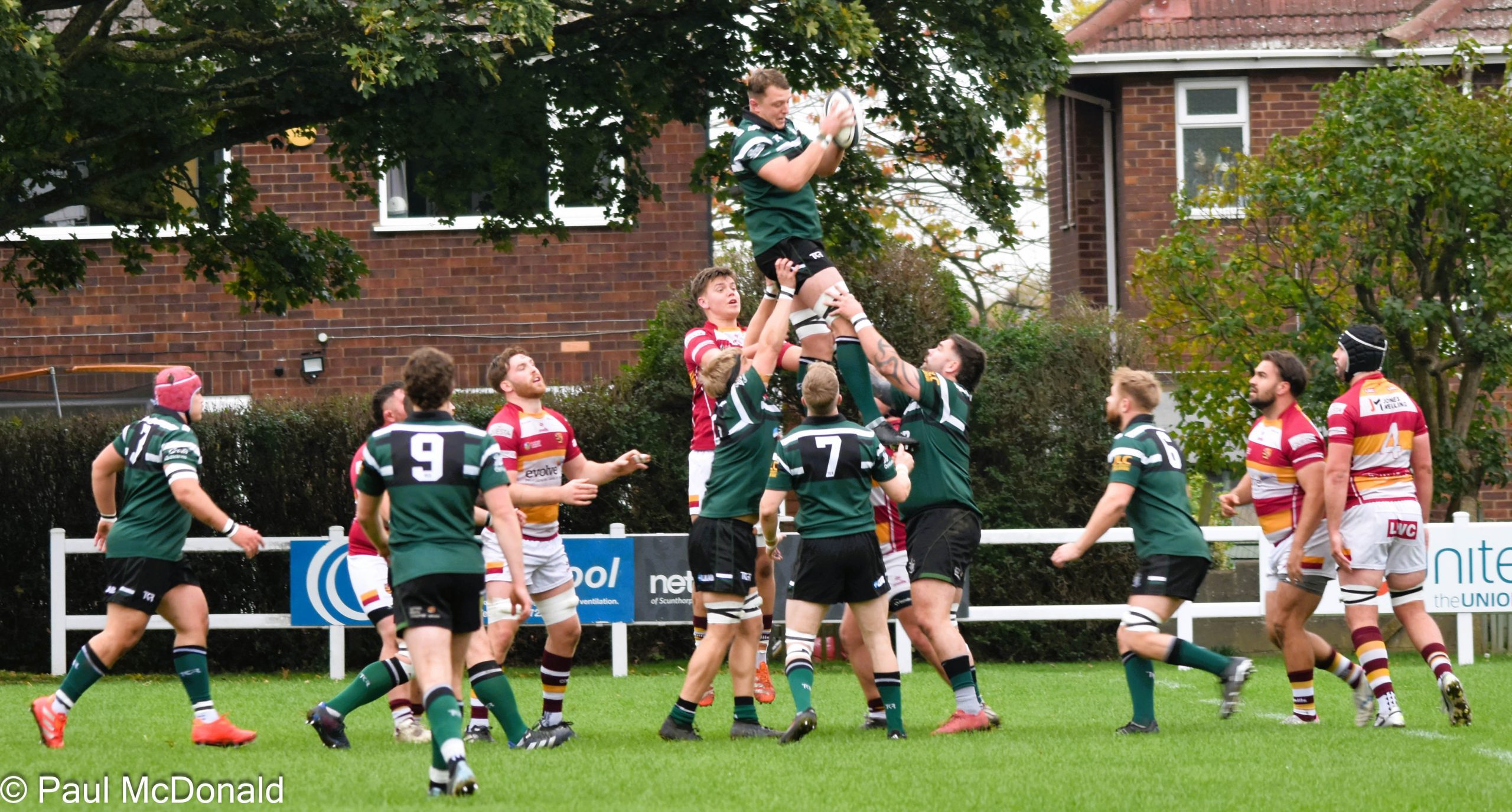 Scunthorpe strike back five minutes later with a well worked try from Harry Wright when Scunthorpe were awarded a penalty, Will Robinson kicked to the corner to allow the catch and drive line out to operate, which it did to perfection. The Scunthorpe maul functioned extremely well, and Harry Wright secured the try which was converted by Will Dark, 7-7.