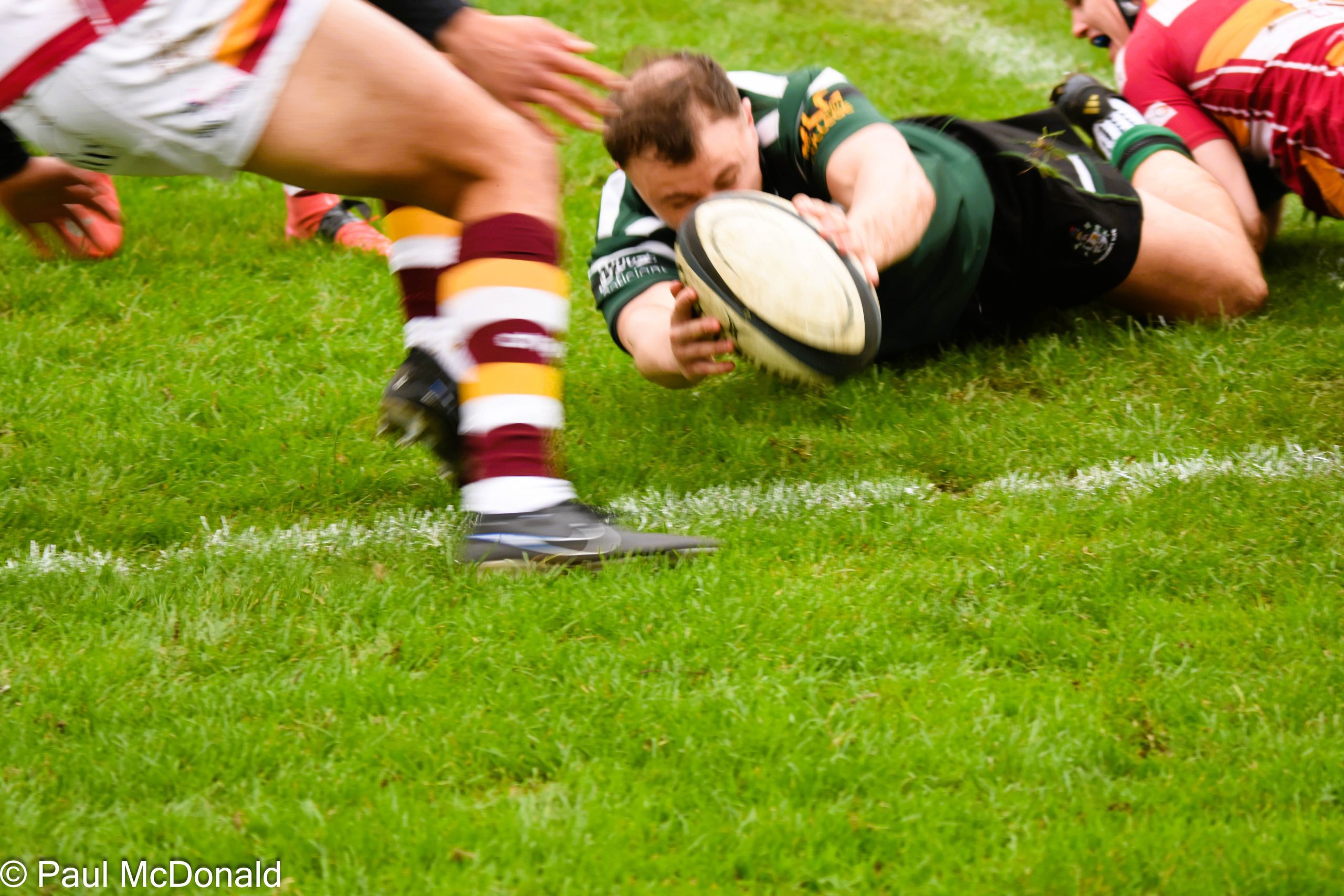 Tim Robinson’s men were not giving in and defending their line superbly. Fylde were held up over the line, so Taylor took a goal line drop out. Unfortunately, if the ball does not find space on the field the Fylde backs will catch and run all day. A lapse in concentration and some poor tackling allowed big strong running centre Sam Stott an easy try, which Cassidy converted, 22-38.