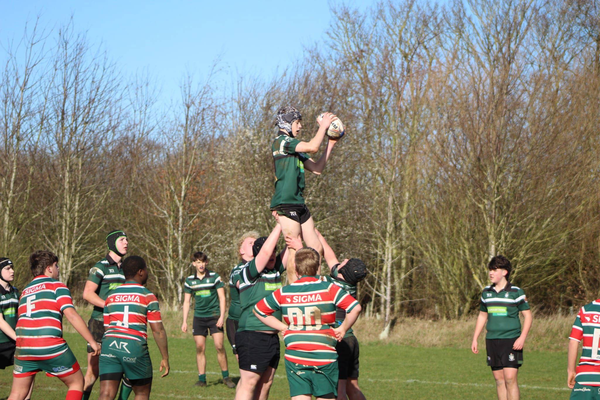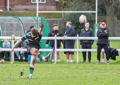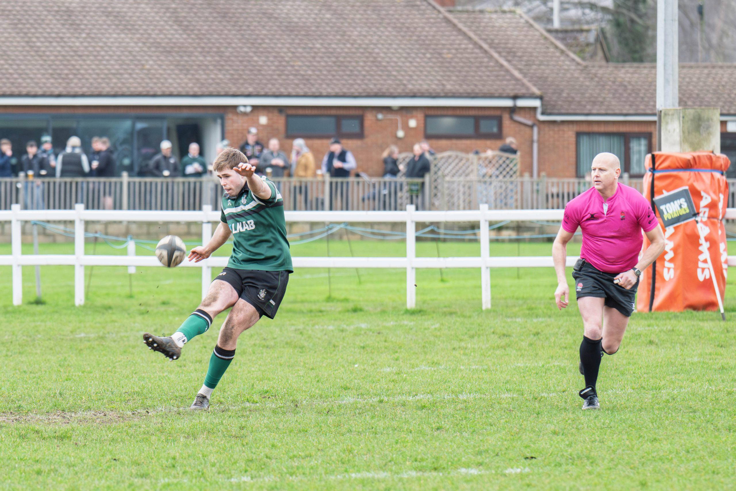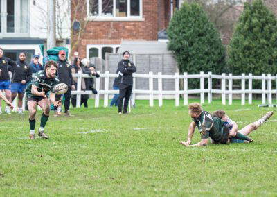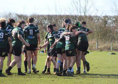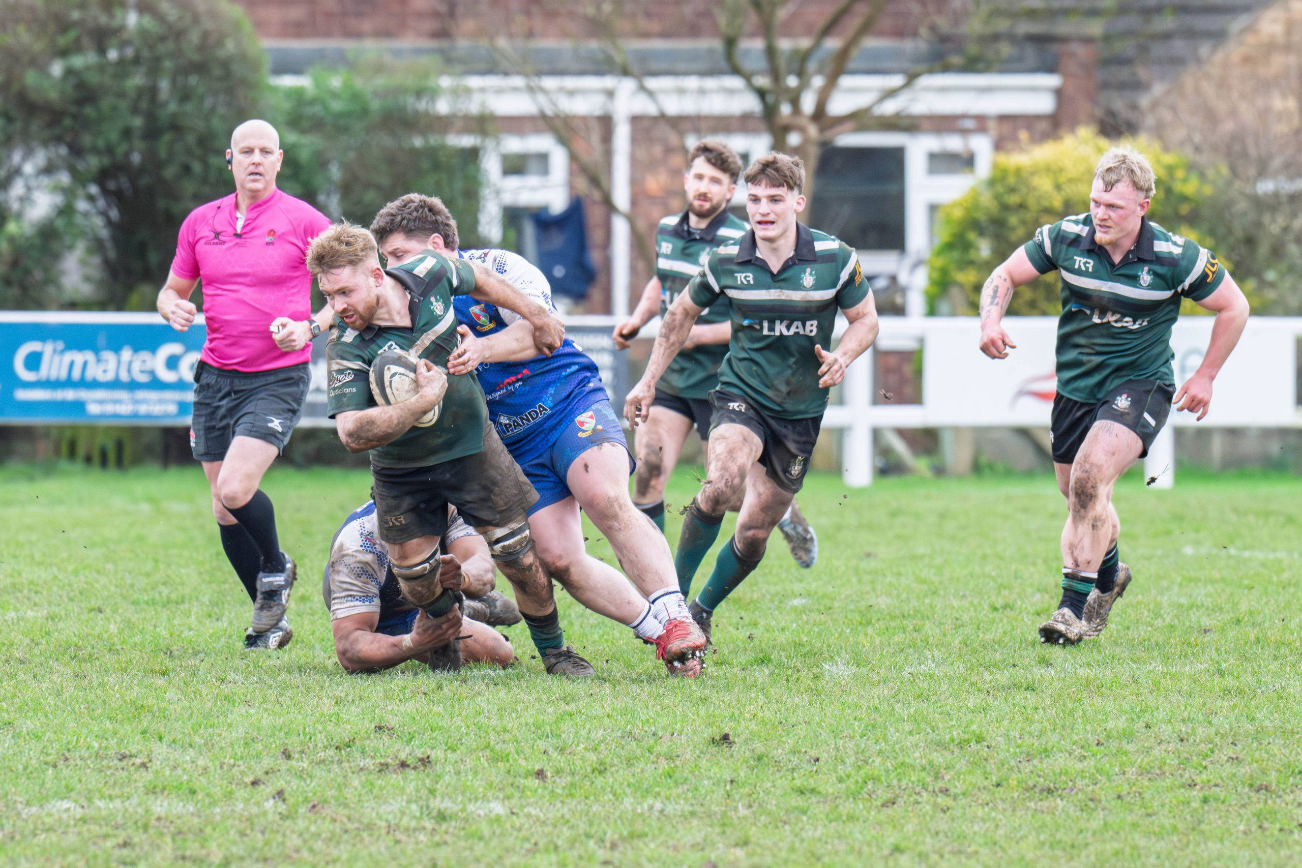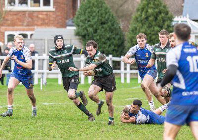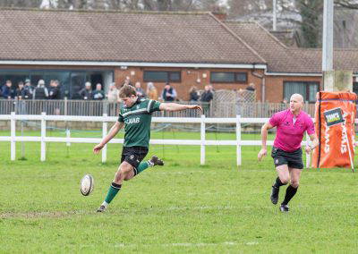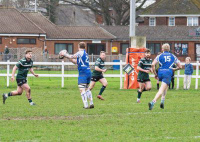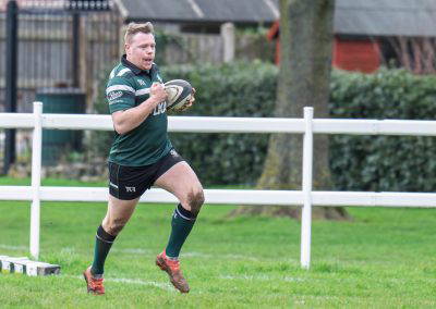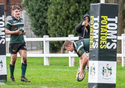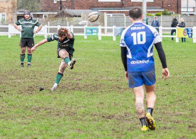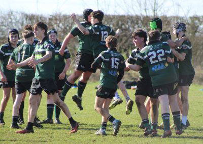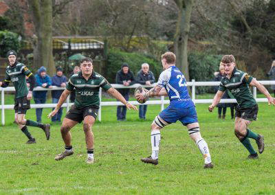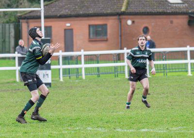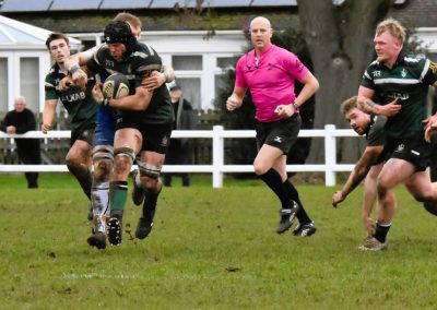 Hull set their big forwards carrying the ball and only great defence by the Greens on their own 5m line held them up before a turnover ball and clearance kick by Ethan Taylor took play up to the 10 metre line, Hull made another error at the line out, again the ball is picked up by Greens and finds its way into the hands of Will Robinson to score a try under the posts, converted by Will Darke.