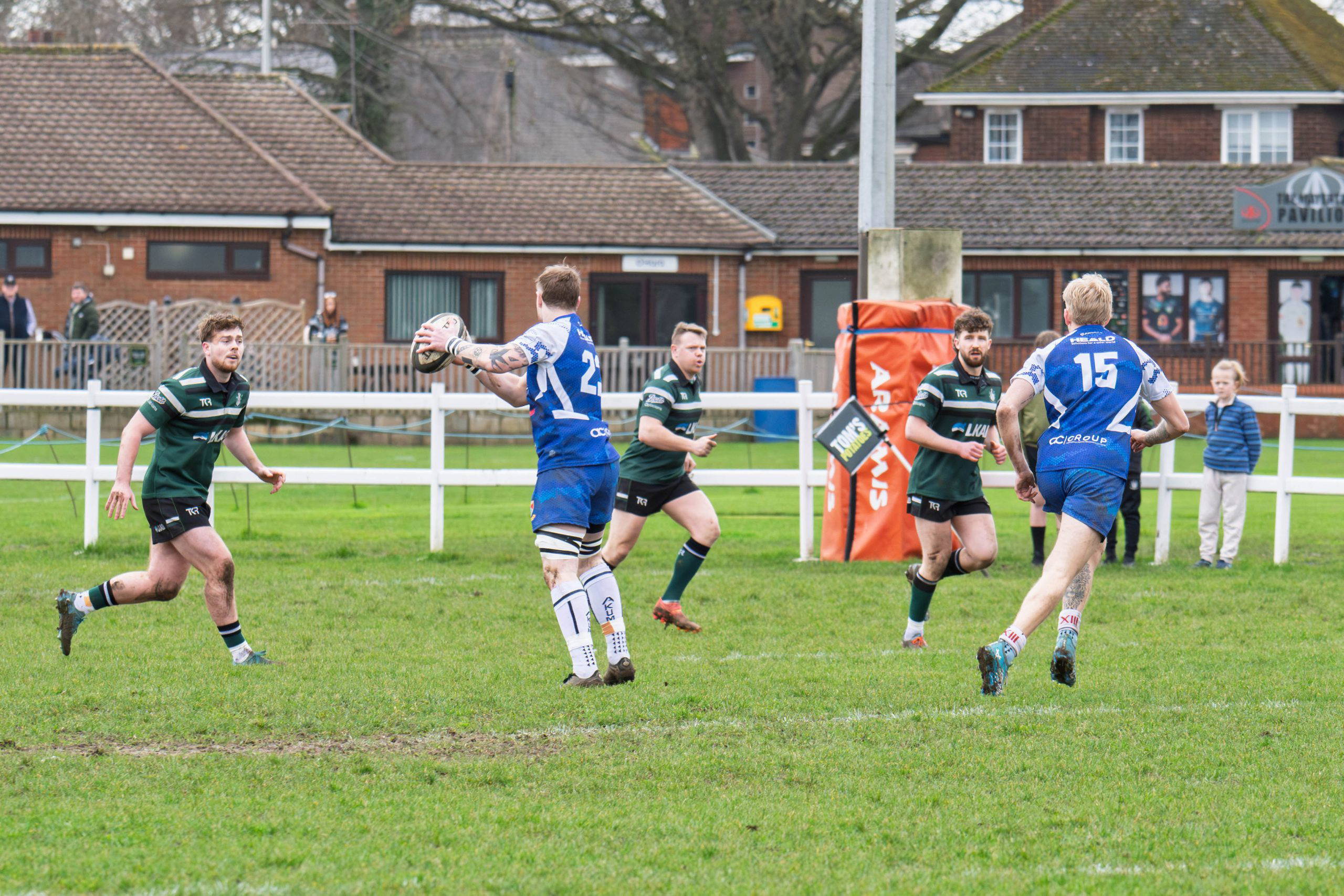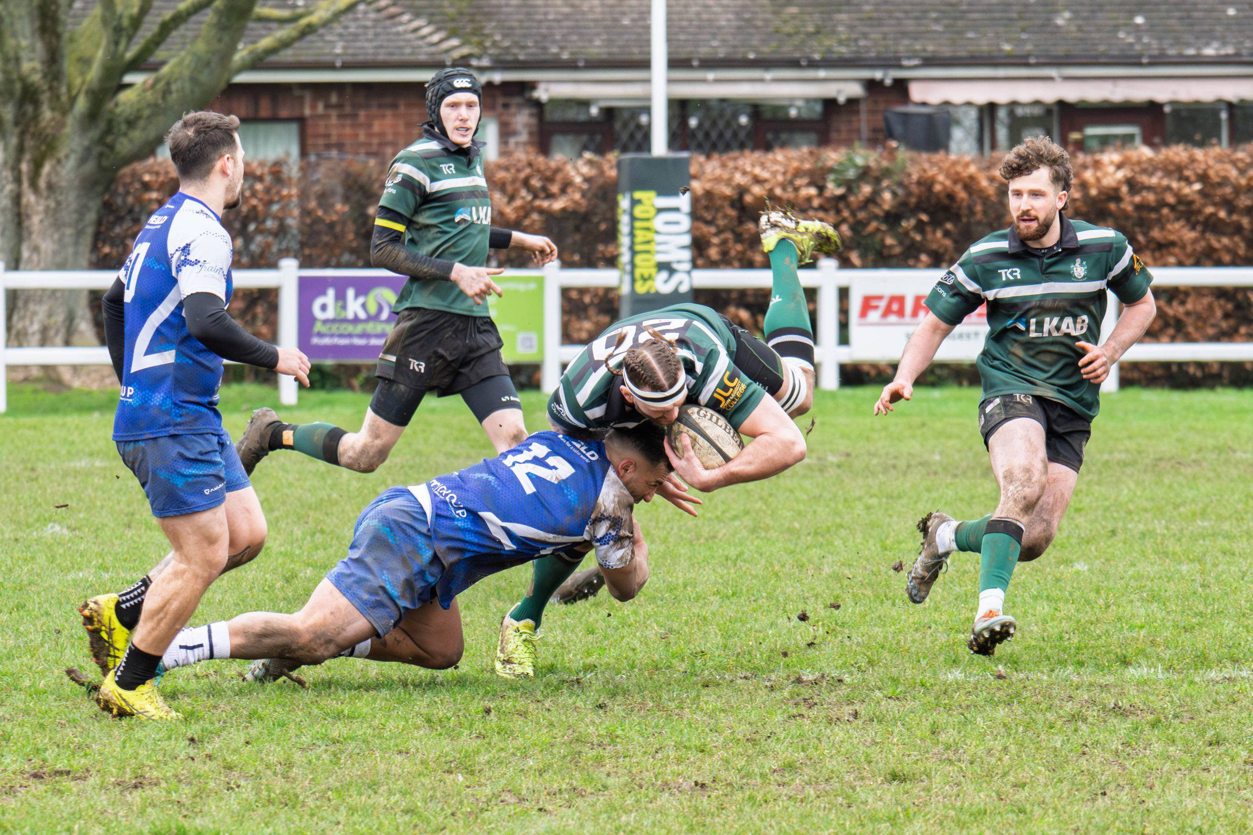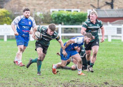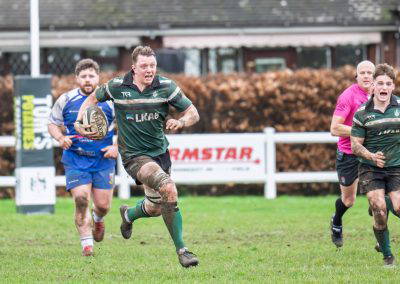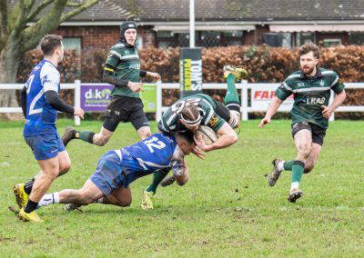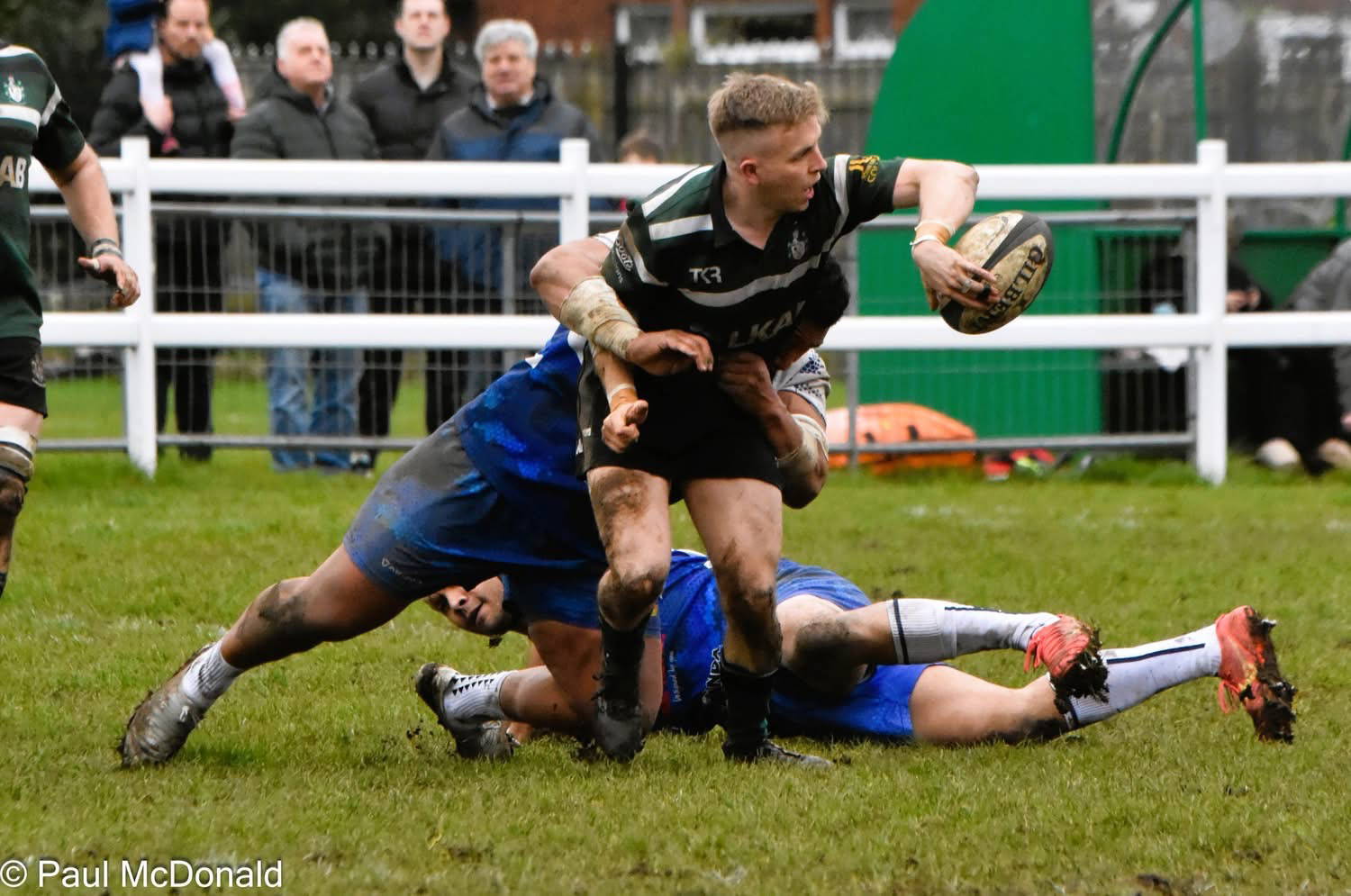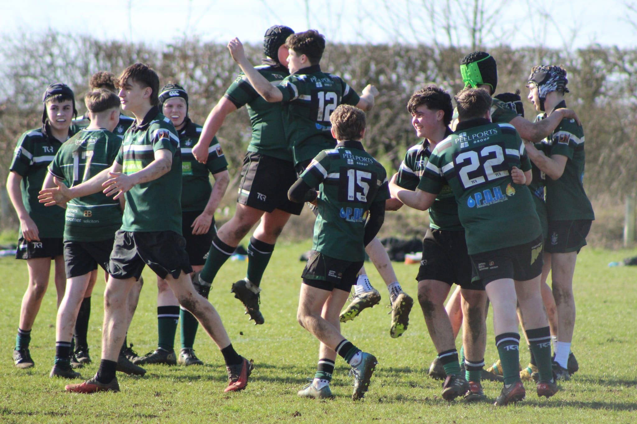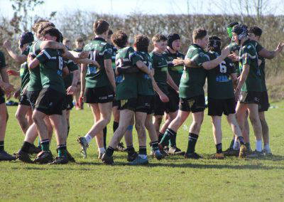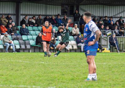 Hull set their big forwards carrying the ball and only great defence by the Greens on their own 5m line held them up before a turnover ball and clearance kick by Ethan Taylor took play up to the 10 metre line, Hull made another error at the line out, again the ball is picked up by Greens and finds its way into the hands of Will Robinson to score a try under the posts, converted by Will Darke.