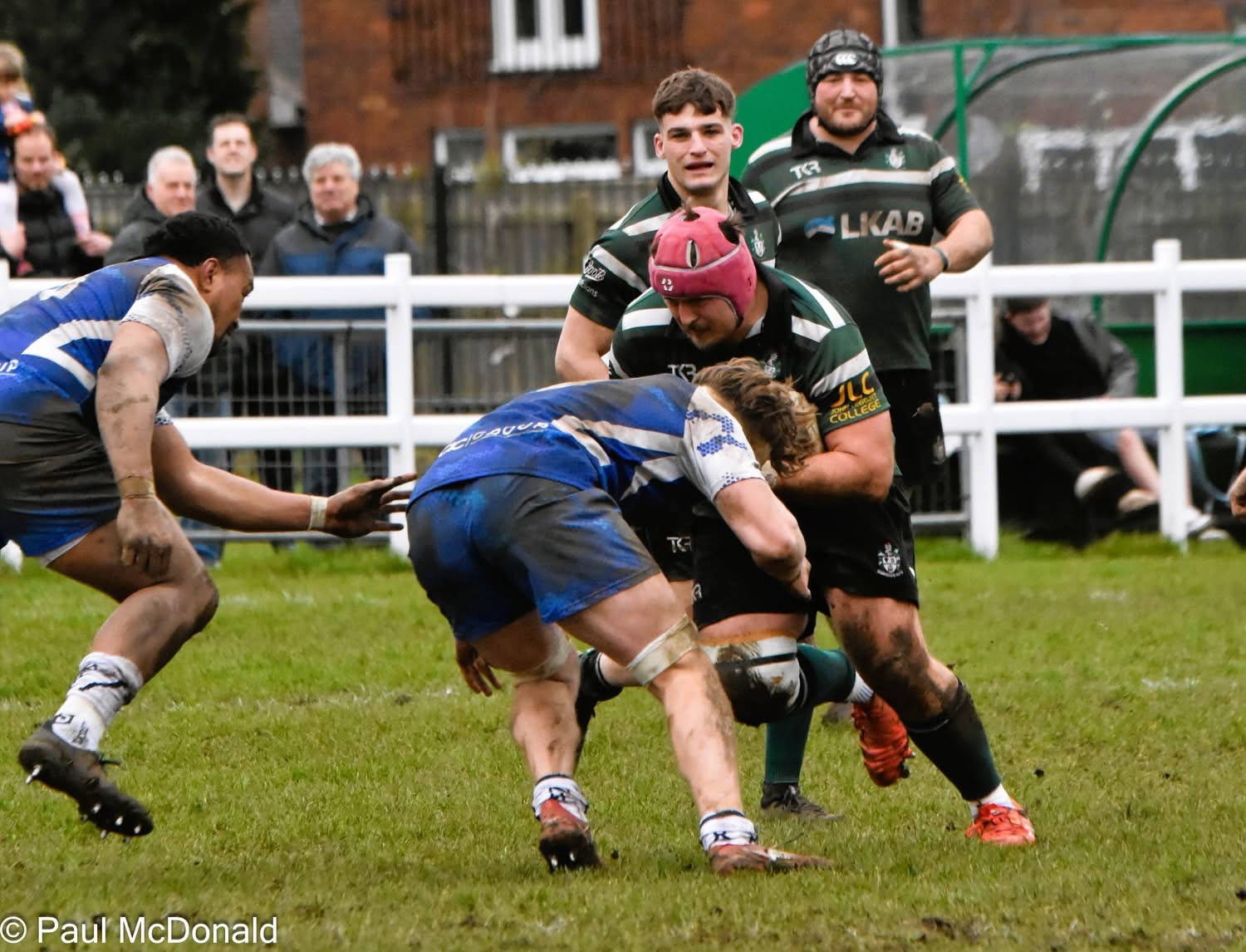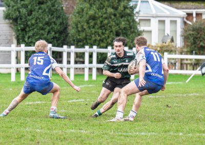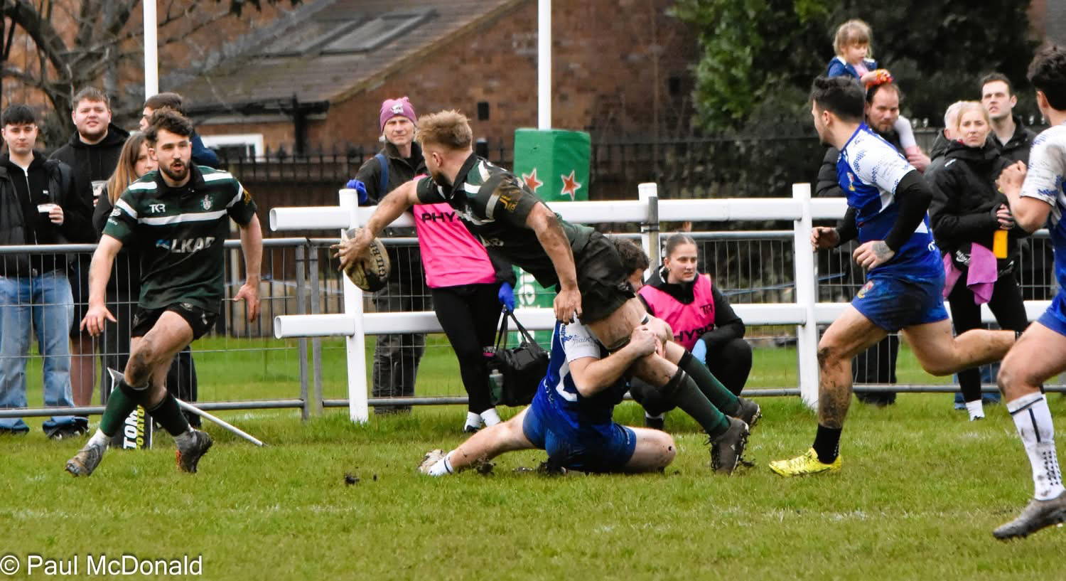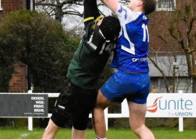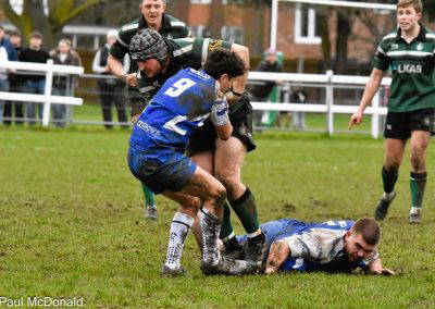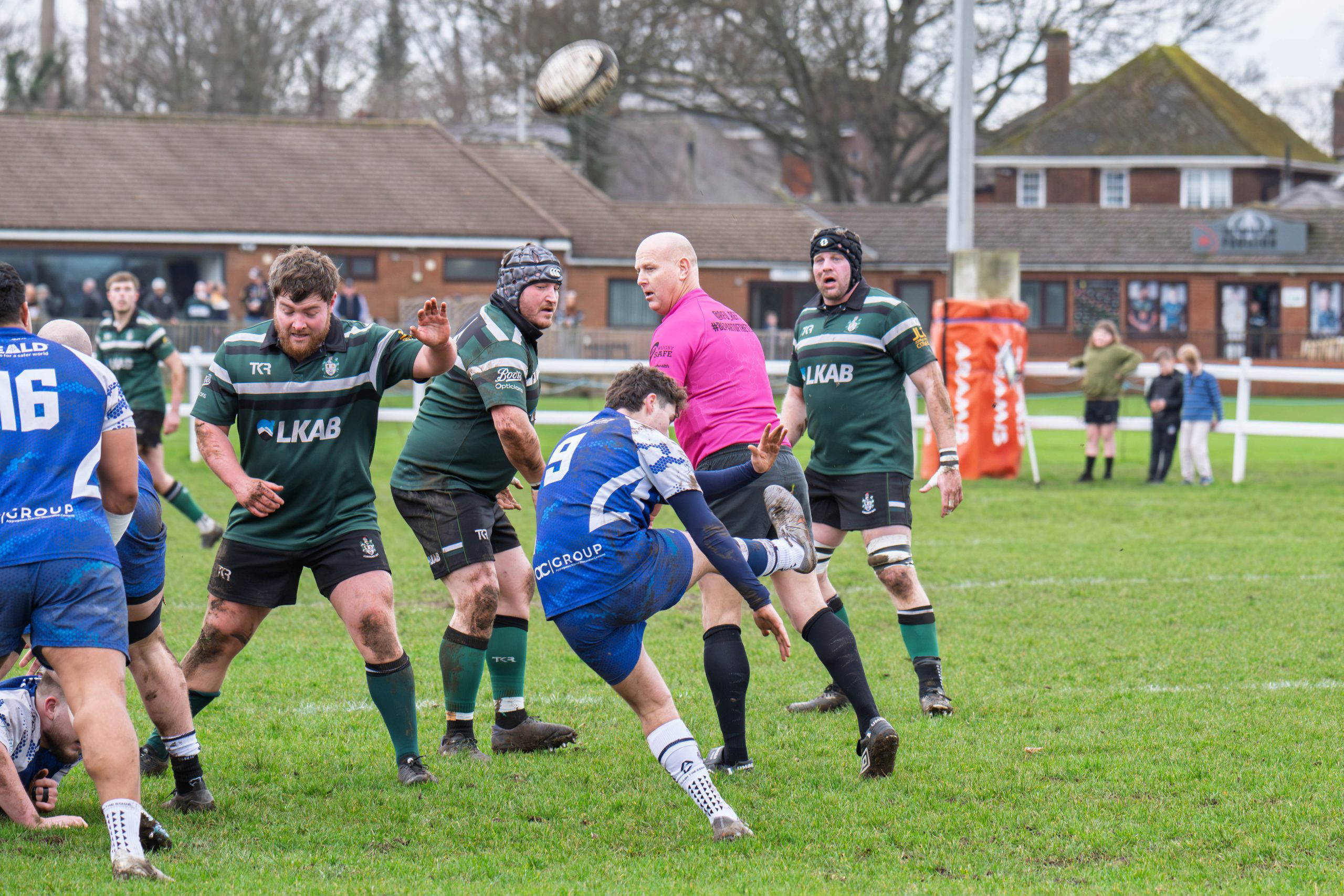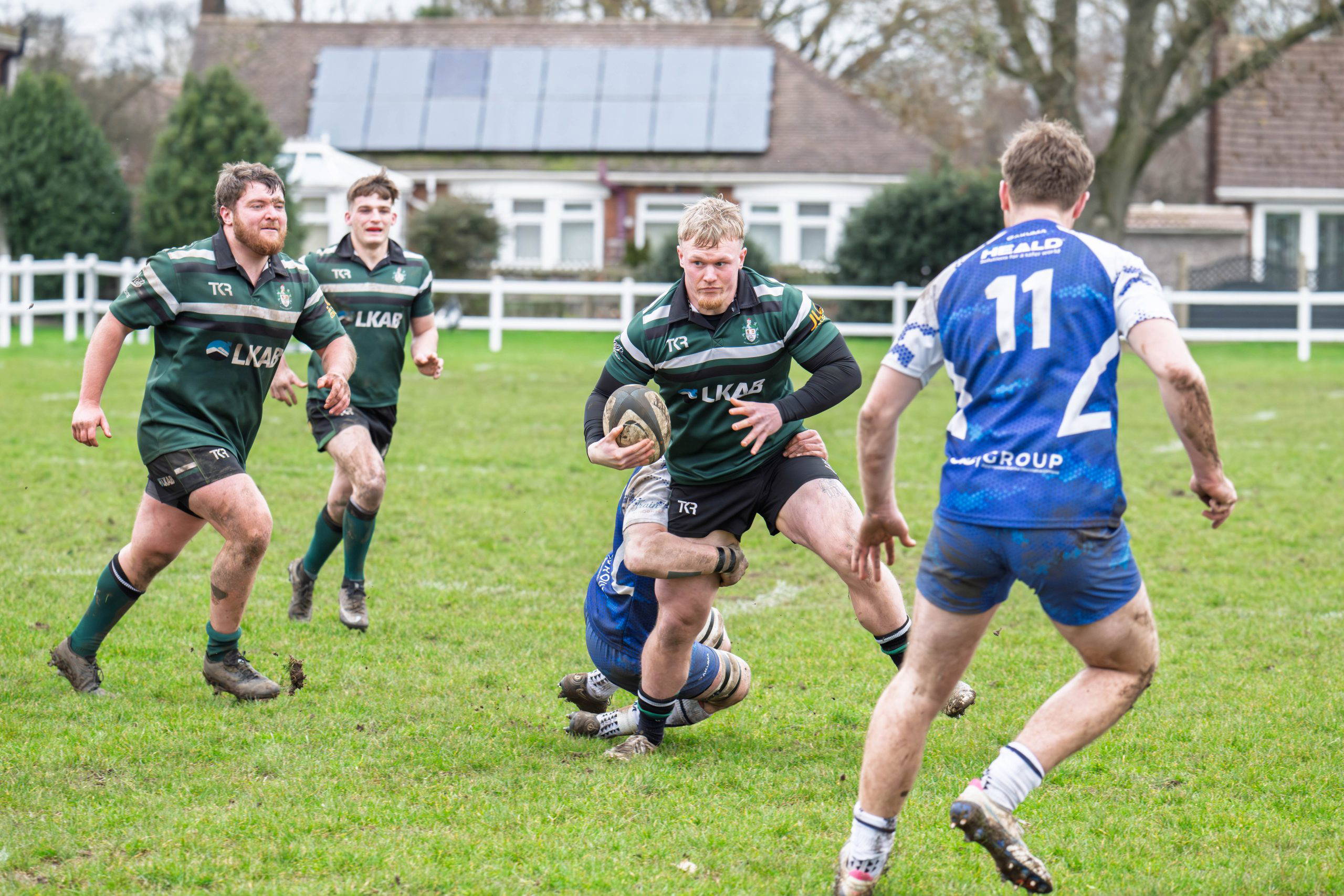 Hull set their big forwards carrying the ball and only great defence by the Greens on their own 5m line held them up before a turnover ball and clearance kick by Ethan Taylor took play up to the 10 metre line, Hull made another error at the line out, again the ball is picked up by Greens and finds its way into the hands of Will Robinson to score a try under the posts, converted by Will Darke.
