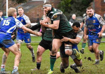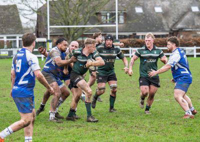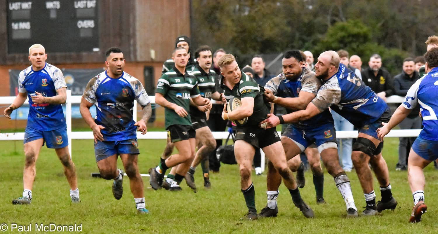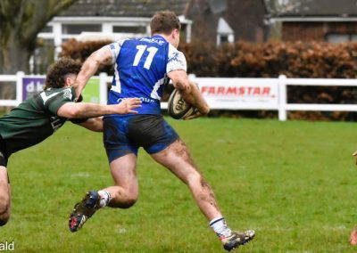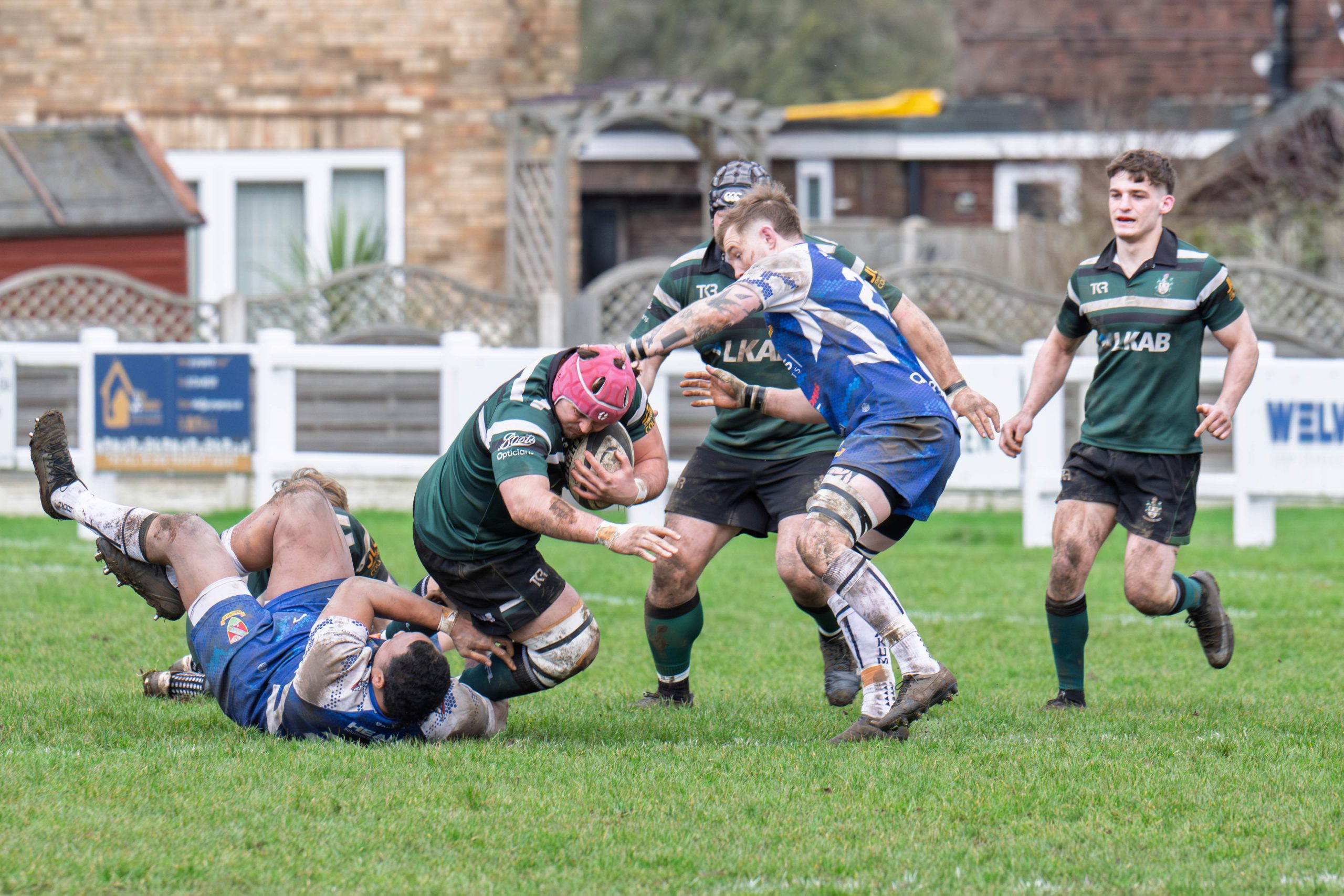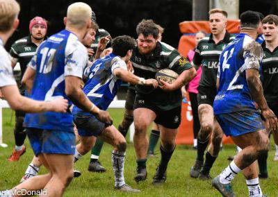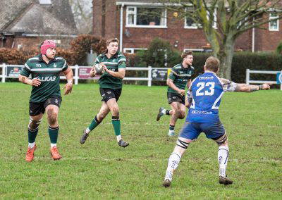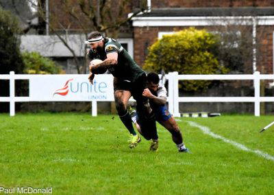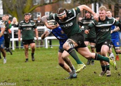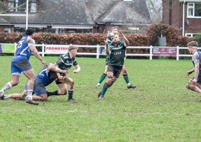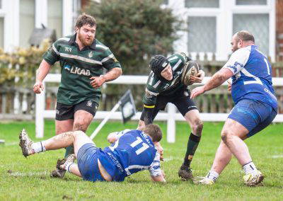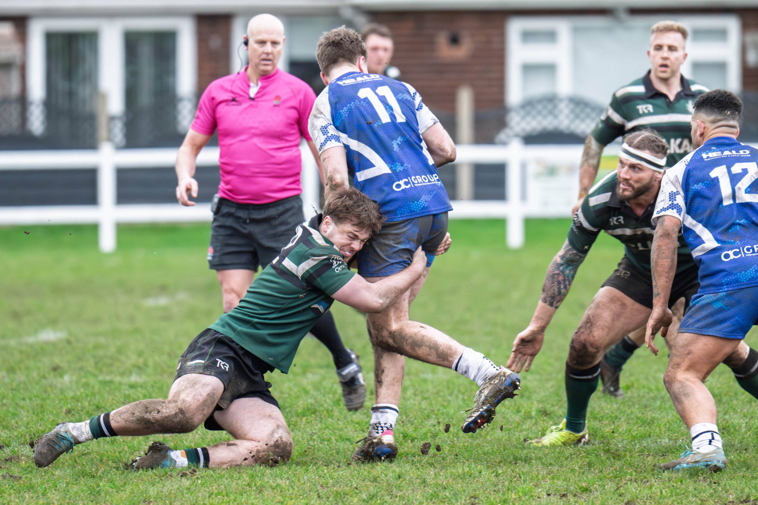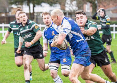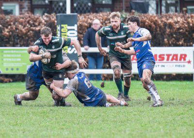 Hull set their big forwards carrying the ball and only great defence by the Greens on their own 5m line held them up before a turnover ball and clearance kick by Ethan Taylor took play up to the 10 metre line, Hull made another error at the line out, again the ball is picked up by Greens and finds its way into the hands of Will Robinson to score a try under the posts, converted by Will Darke.