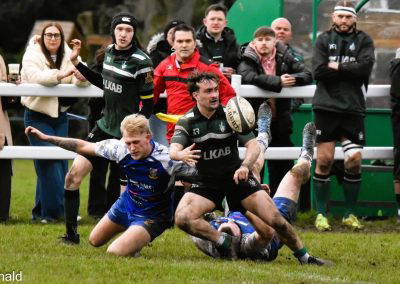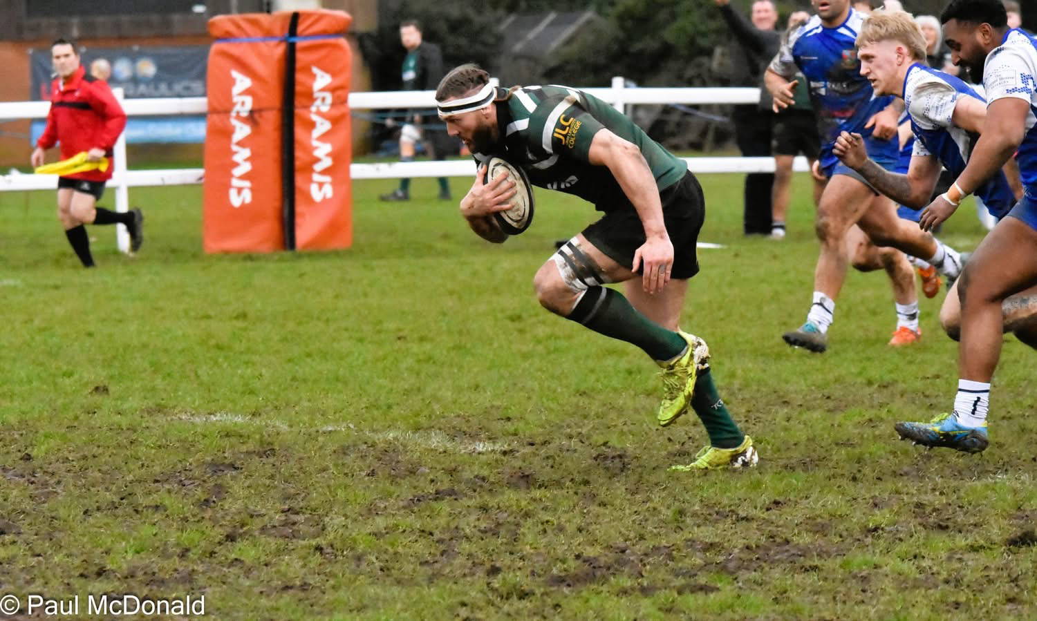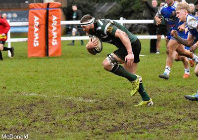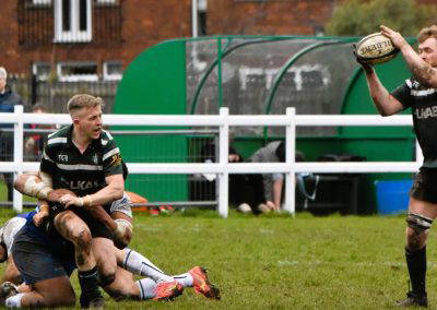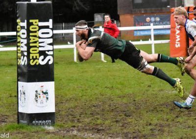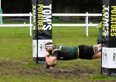 From the restart Hull are penalised for crossing in trying to clear their lines. The Greens kick for the corner and from the line out, a catch and drive sees a score for Ollie Arnold. Converted by Will Darke.