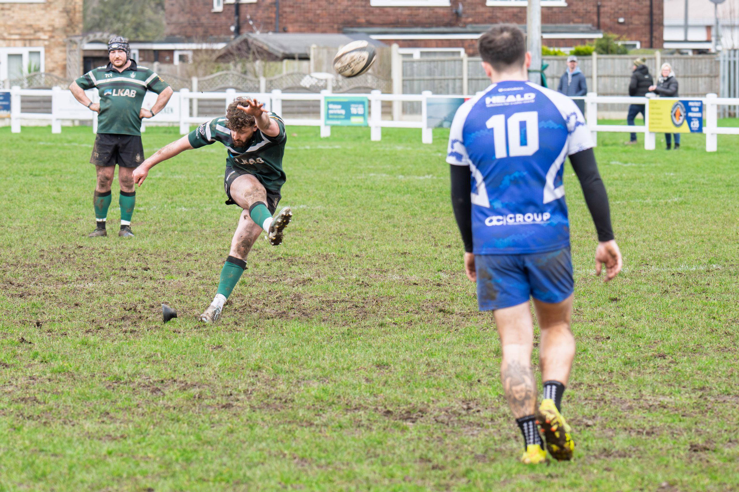 From the outset the Greens on the attack, Hull are penalised on their 22 for being offside, the Greens kick for goal and the penalty is converted by Will Darke.
