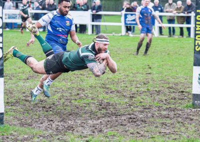 Scunthorpe would answer back after some quick hands in the back saw Recce Clark through, he almost stopped himself from scoring after thinking of stepping back inside but instead he backs himself for the corner and scores. Conversion was unsuccessful and the score is now 30-5.