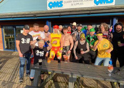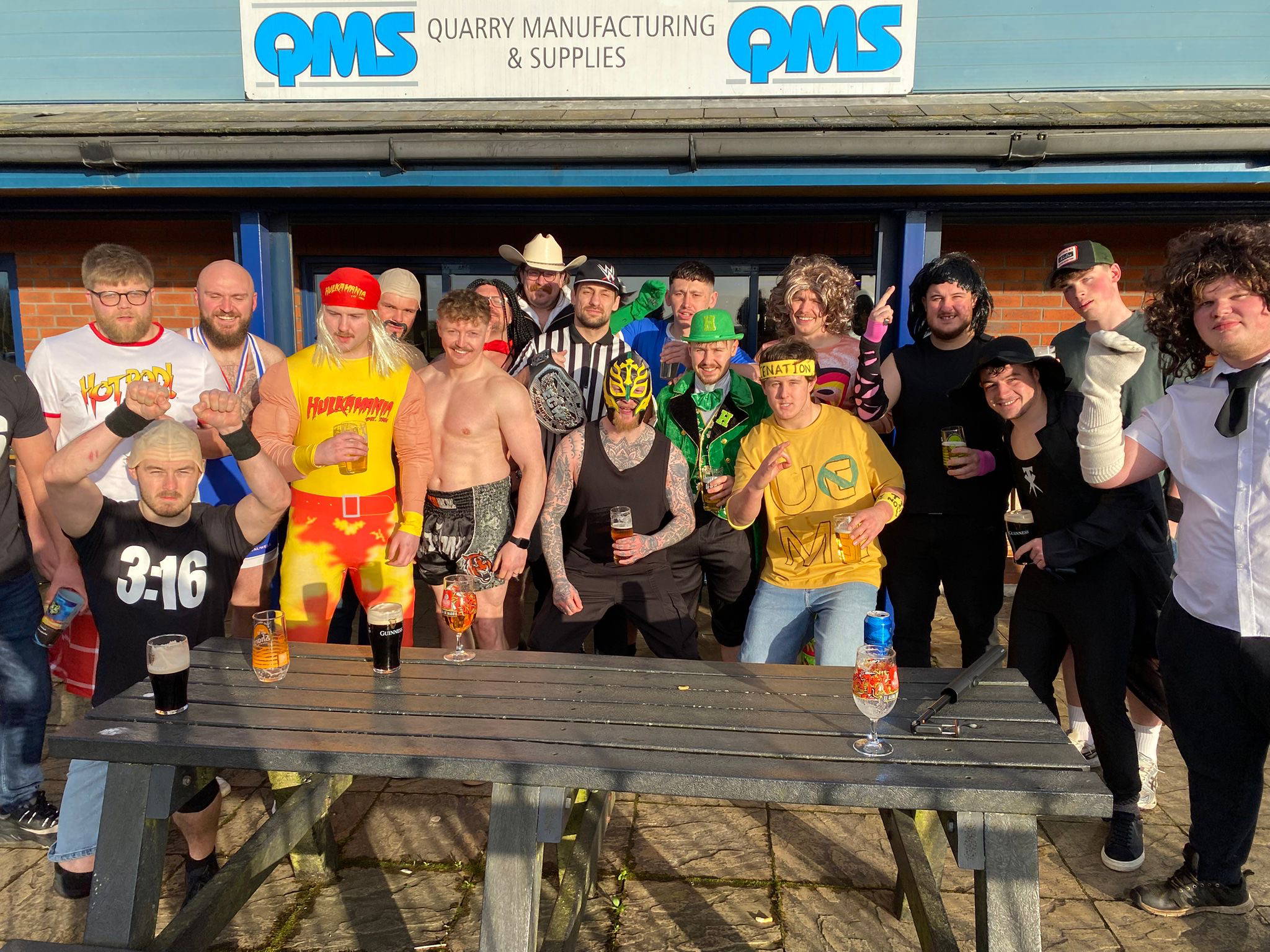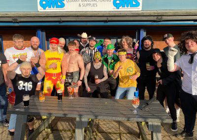 The Stags travelled down the M1 to Leicestershire, and it coincided with the annual bus outing for the Stags with the fancy dress theme of Wrestlers.