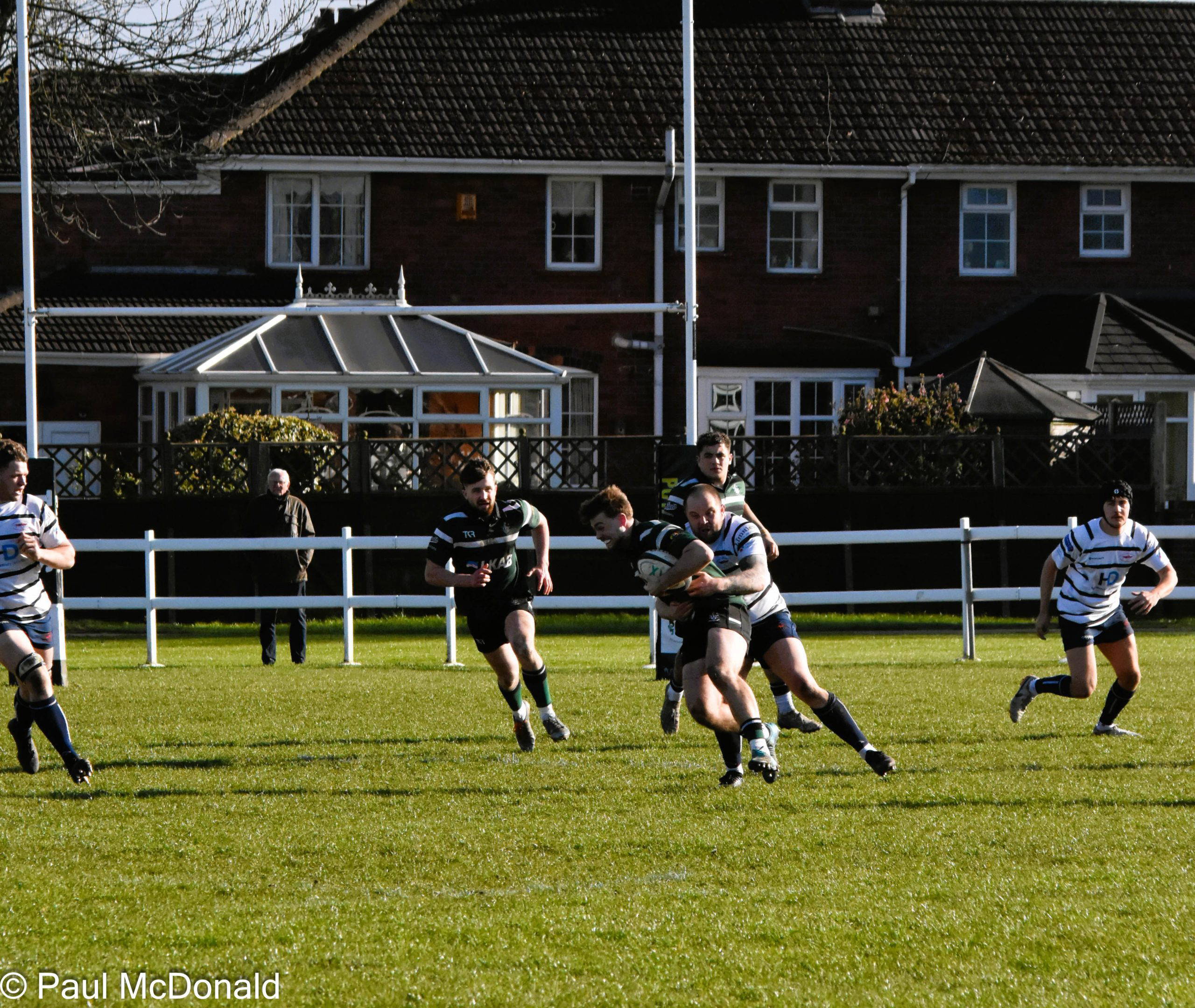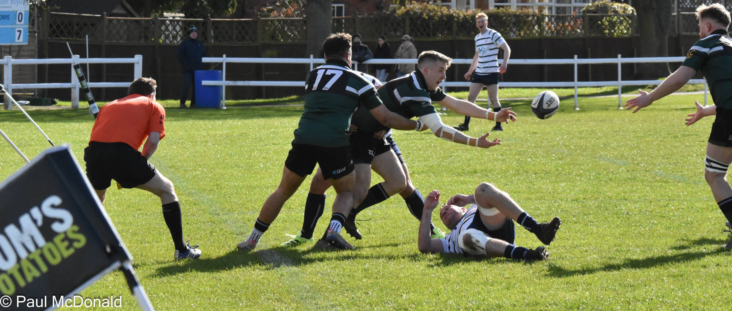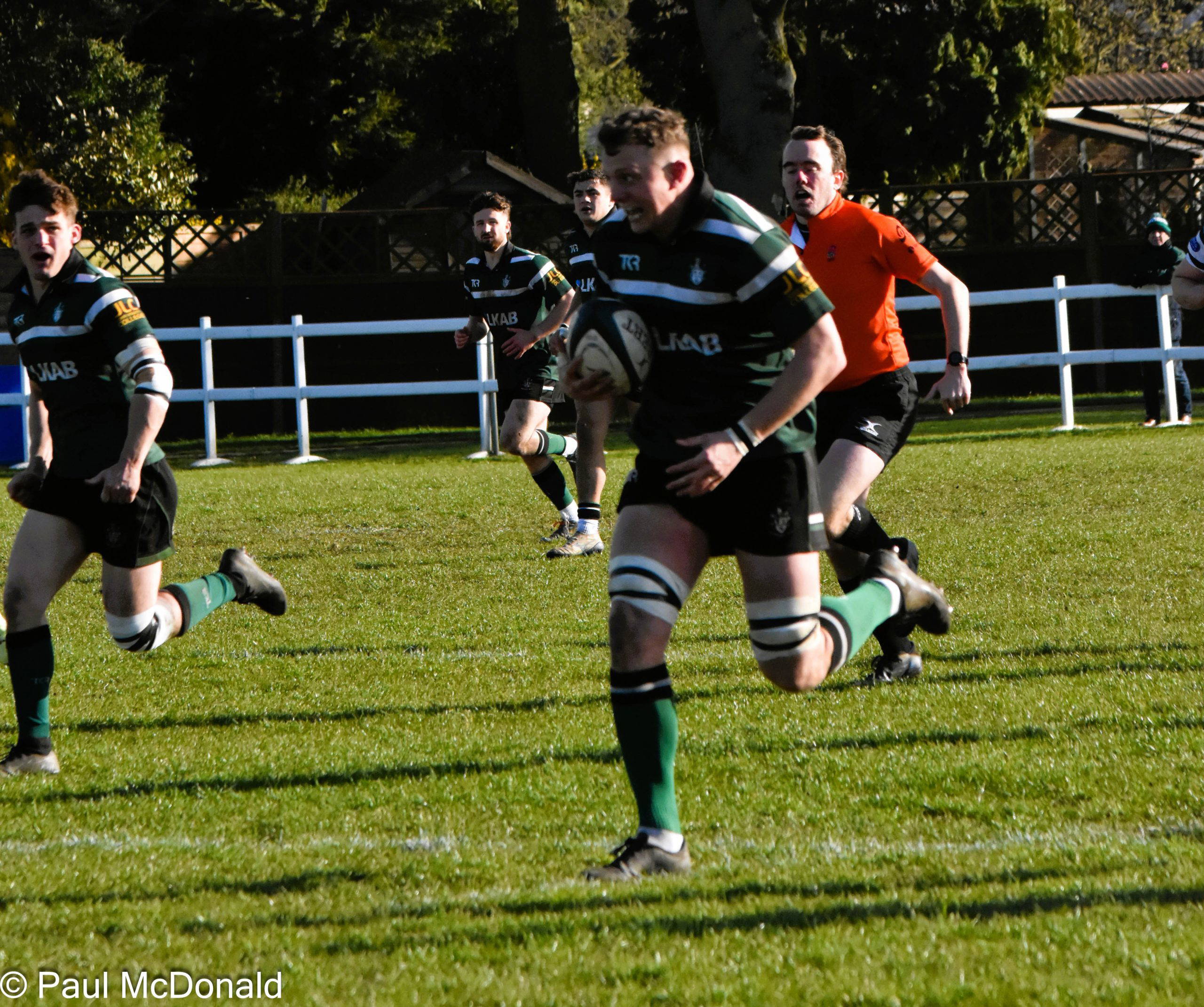 Coalville earned themselves a penalty on the Green 22 metre line bang in front of the posts but their scrum half James Phelps mis-judged the cross wind and the chance went begging.