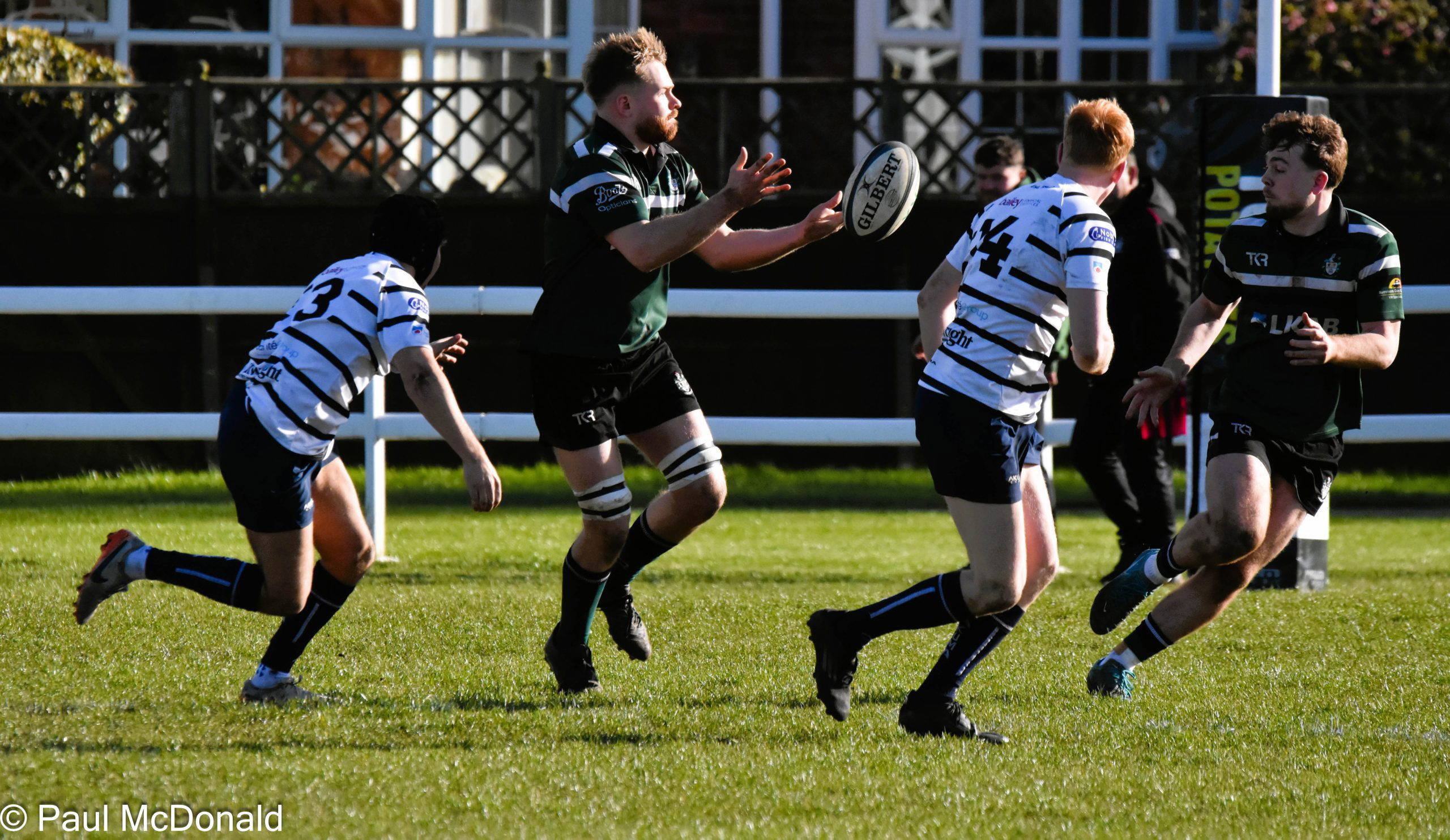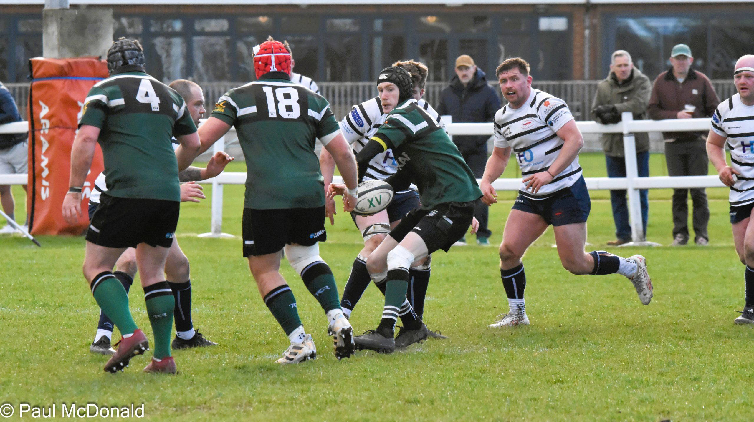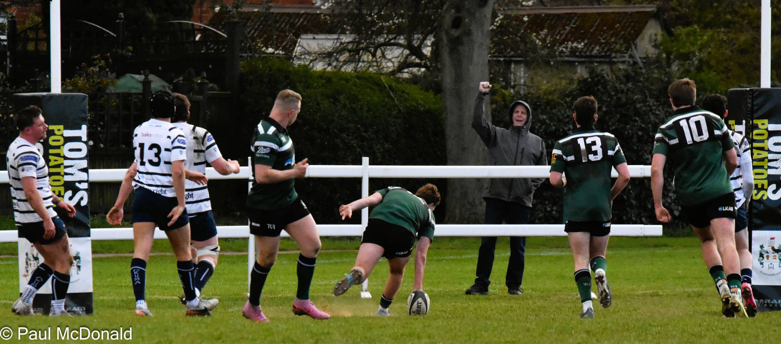 Coalville earned themselves a penalty on the Green 22 metre line bang in front of the posts but their scrum half James Phelps mis-judged the cross wind and the chance went begging.