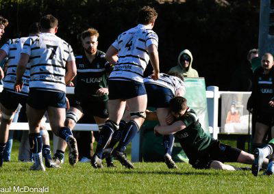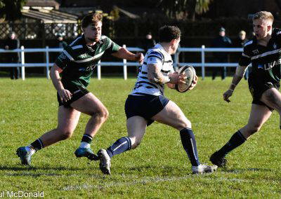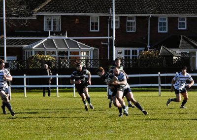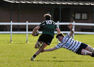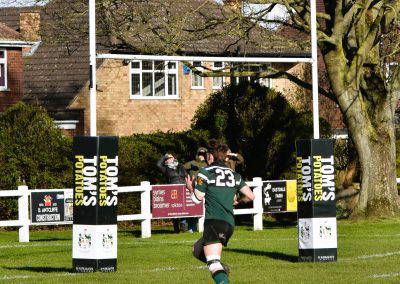 Another penalty was given to the Stags just to the right of the posts on the 22 and Dawson accepted the offer to slot it over to stretch the lead to 0-20, with 50 minutes on the clock Coalville got their first entry on the scoreboard with a converted try, 7-20.