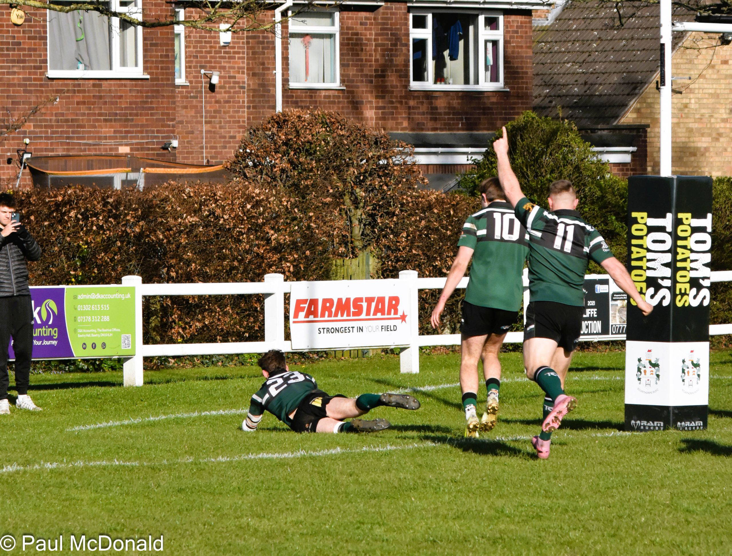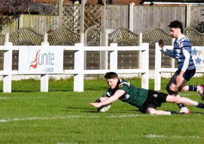 Scunthorpe would seal the try bonus point and it was scored by scrum half Joey Mowbray a couple of phases through the middle of the park put Scunthorpe on the front foot, a clever pick and go at the base of the scrum by Nick Dyson opened up a gap for Joey who scored under the posts, conversion was successful and the score was now 28-7 to Scunthorpe.